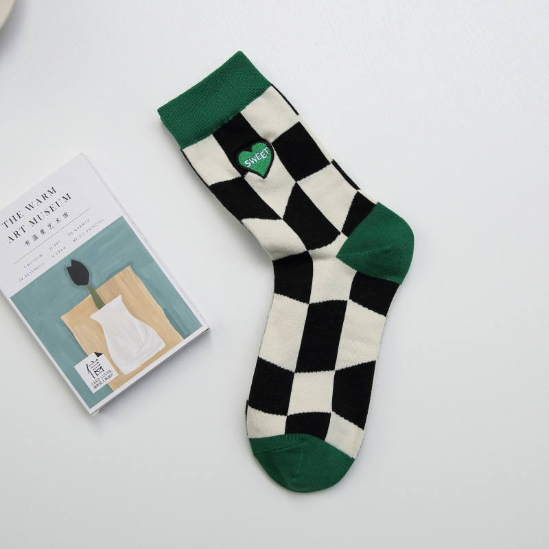 2024 봄 여름 양말 여성용 인스타 트렌드 봄맞이 자수 꽃무늬 스트라이프 보트 양말 귀여운 중목 양말 트렌디한 디자인