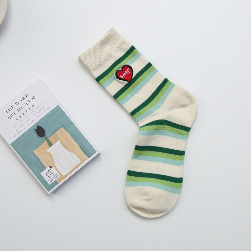 2024 봄 여름 양말 여성용 인스타 트렌드 봄맞이 자수 꽃무늬 스트라이프 보트 양말 귀여운 중목 양말 트렌디한 디자인스토어 가기
