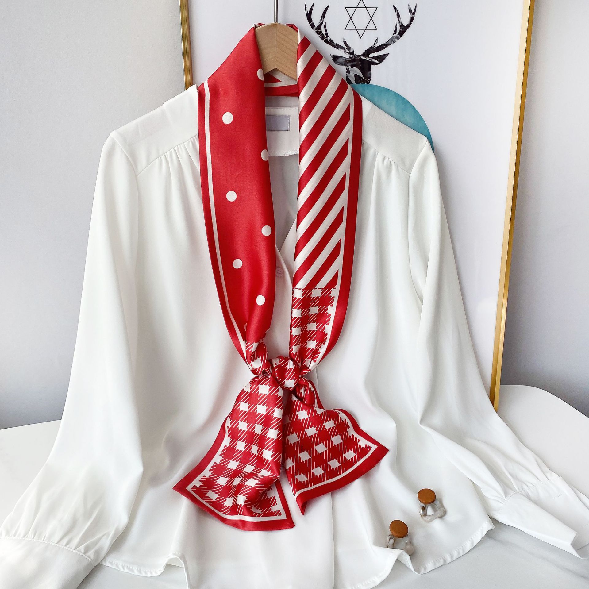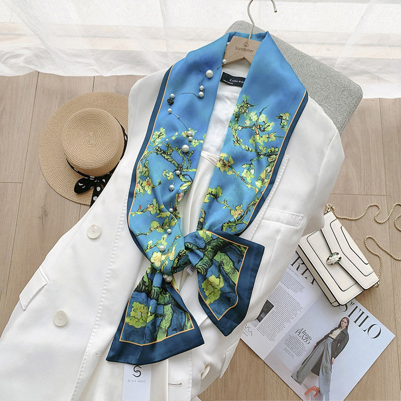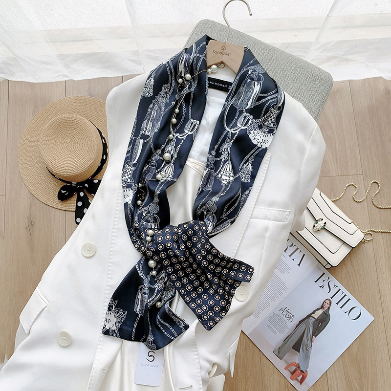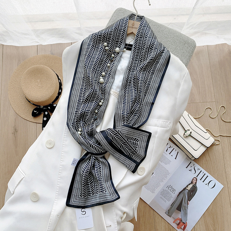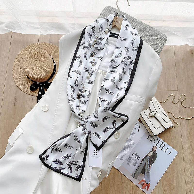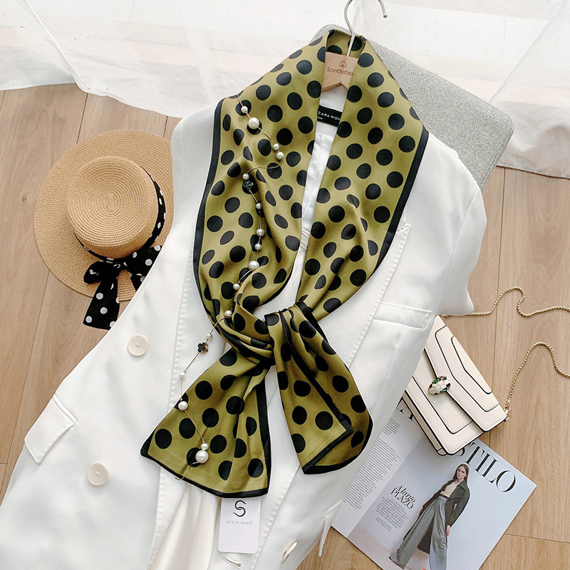 패션 물방울 무늬 실크 같은 얇은 좁은 롱 스카프 여성의 스타일 디자인 감각 실크 같은 리본 모든 매치 스카프 유행스토어 가기