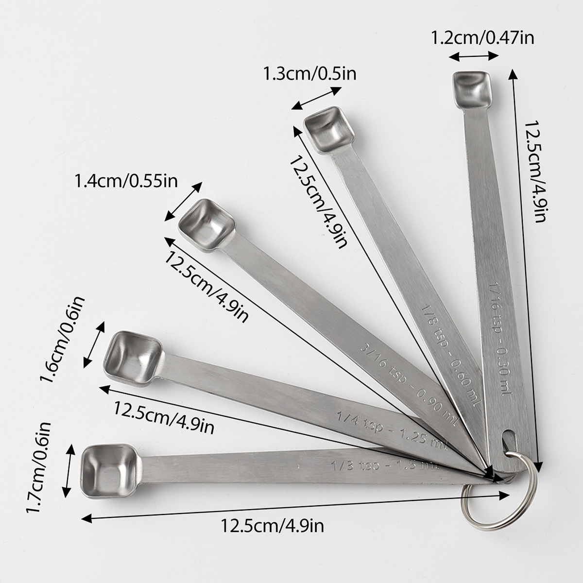 • 스테인리스 스틸 사각 헤드 계량스푼 5개 세트(오리지널 컬러)