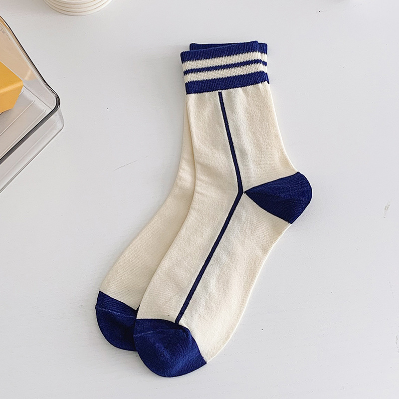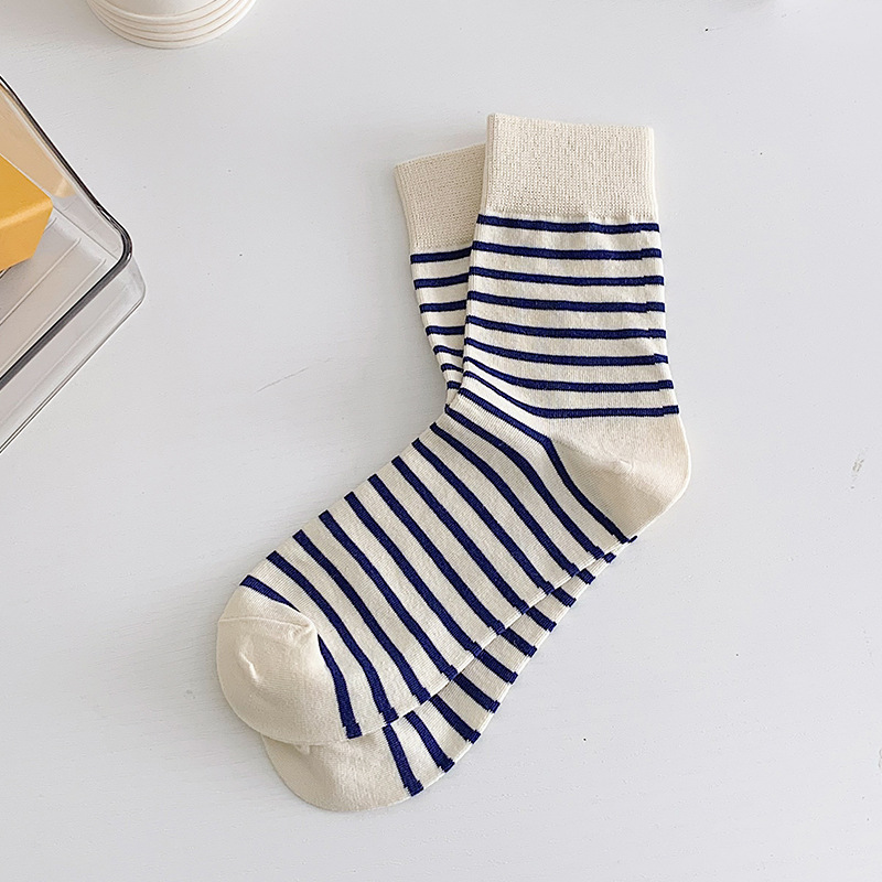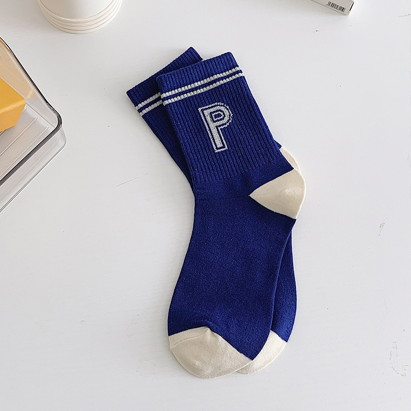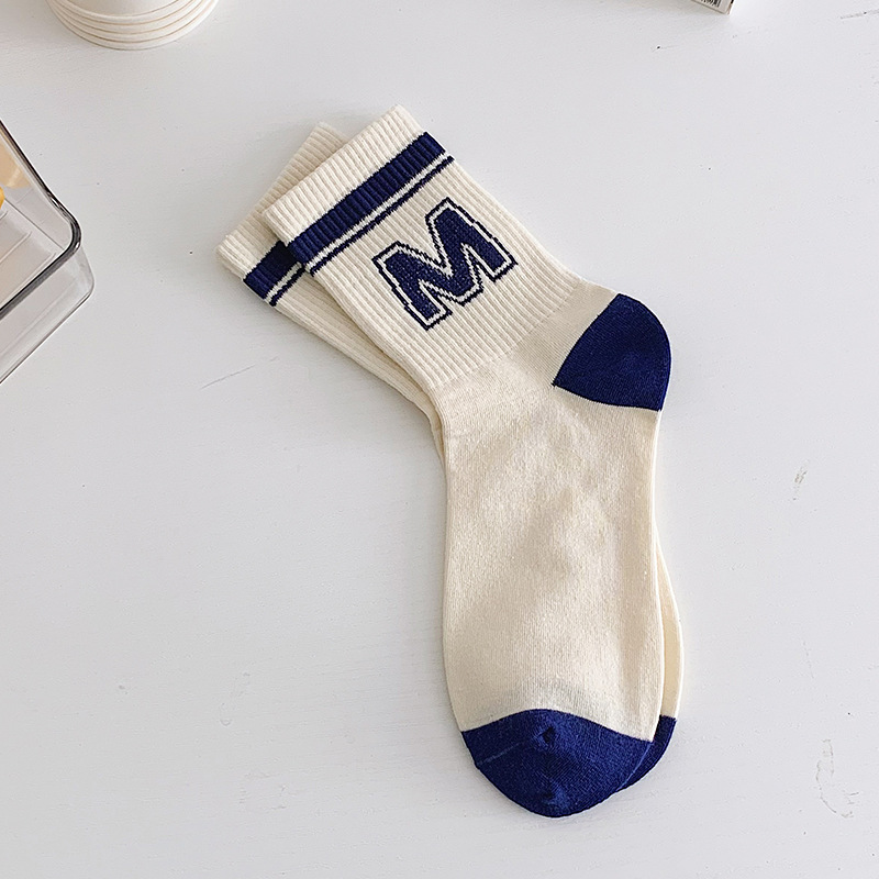 미드 튜브 양말 여성용 가을과 겨울 양말 일본어 알파벳 스포츠 여성용 양말 블루 스트라이프 여성용 땀 흡수 통기성면 양말스토어 가기
