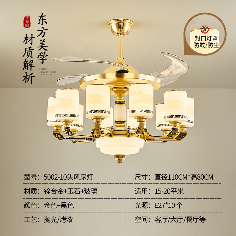 새로운 중국식 천장 팬 램프 보이지 않는 팬 램프 거실 식당 침실 공부 램프 조명 중산 공장 도매스토어 가기