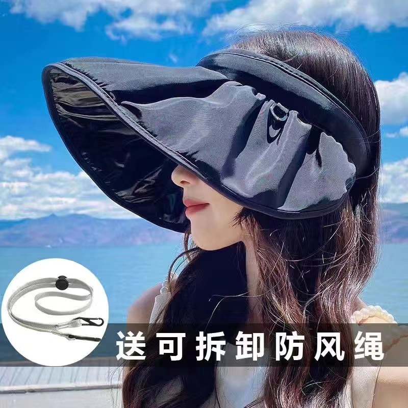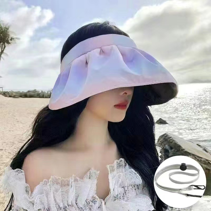 태양 모자 여성의 여름 자외선 차단 검은 색 고무 헤드 밴드 다채로운 그라디언트 쉘 모자 태양 모자 빈 탑 커버 얼굴 도매