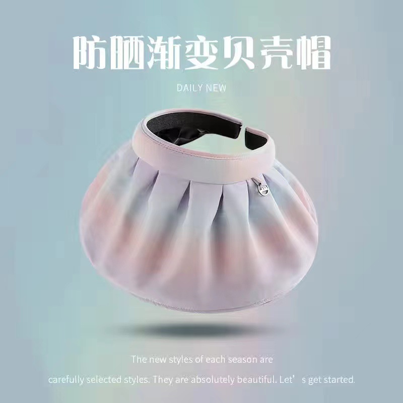 태양 모자 여성의 여름 자외선 차단 검은 색 고무 헤드 밴드 다채로운 그라디언트 쉘 모자 태양 모자 빈 탑 커버 얼굴 도매스토어 가기