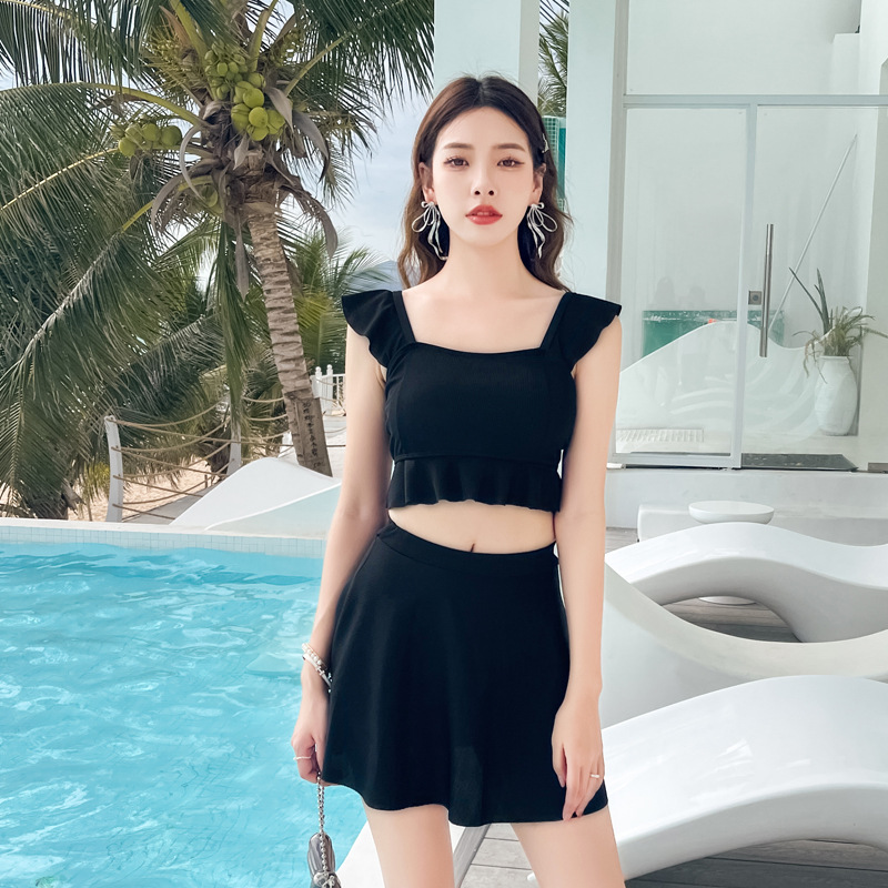 2024 새로운 투피스 스플릿 스커트 스타일 플랫 앵글 수영복 여성 여름 칼리지 스타일 신선 해 보이는 보수적 슬림 모양의 수영복