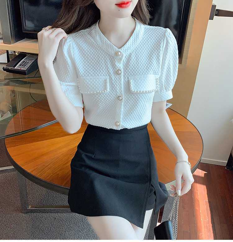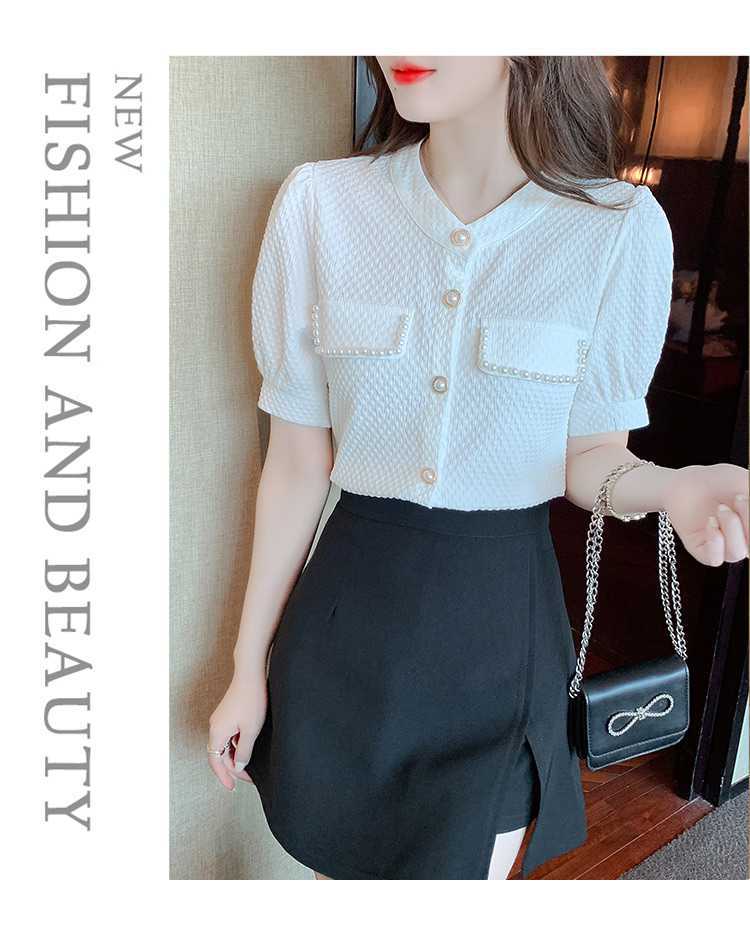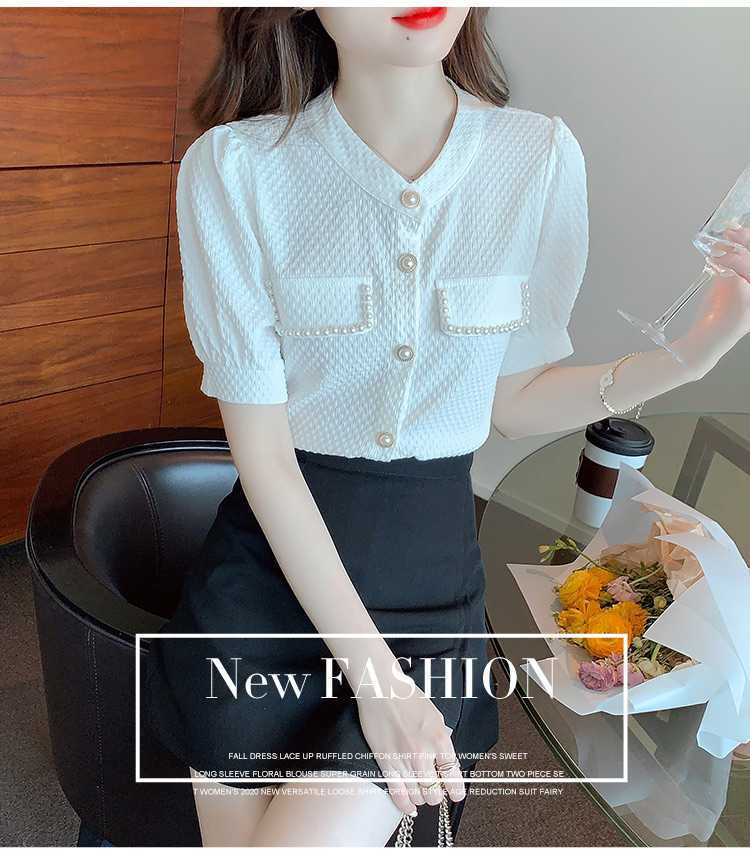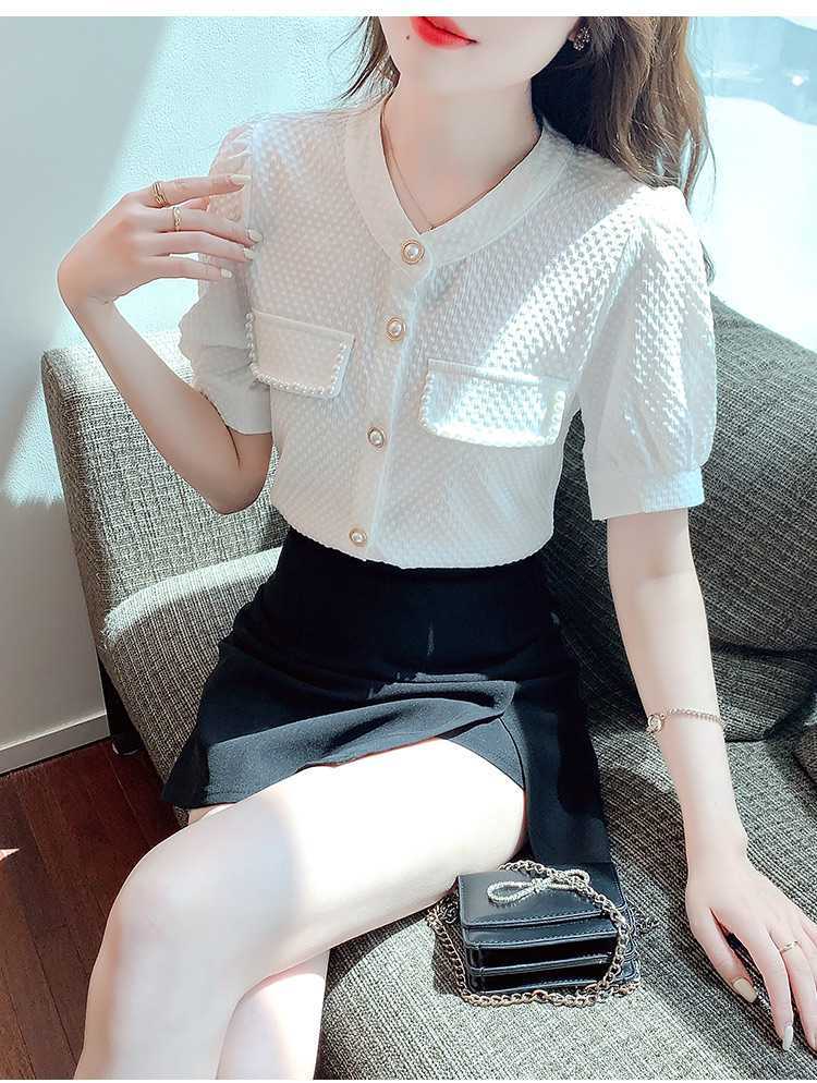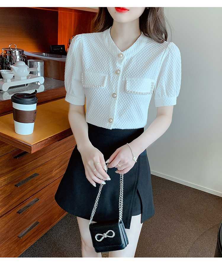 패셔너블한 쉬폰 셔츠 반팔 여름옷 2025년 여름 신상 여성 유럽풍 얇은 반팔 상의