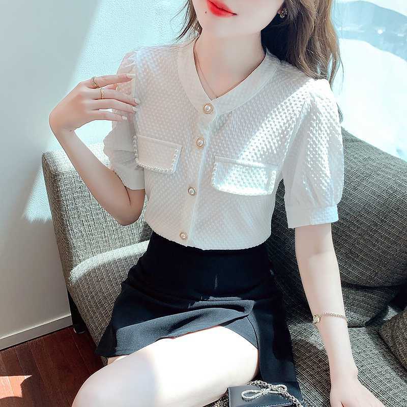 패셔너블한 쉬폰 셔츠 반팔 여름옷 2025년 여름 신상 여성 유럽풍 얇은 반팔 상의스토어 가기