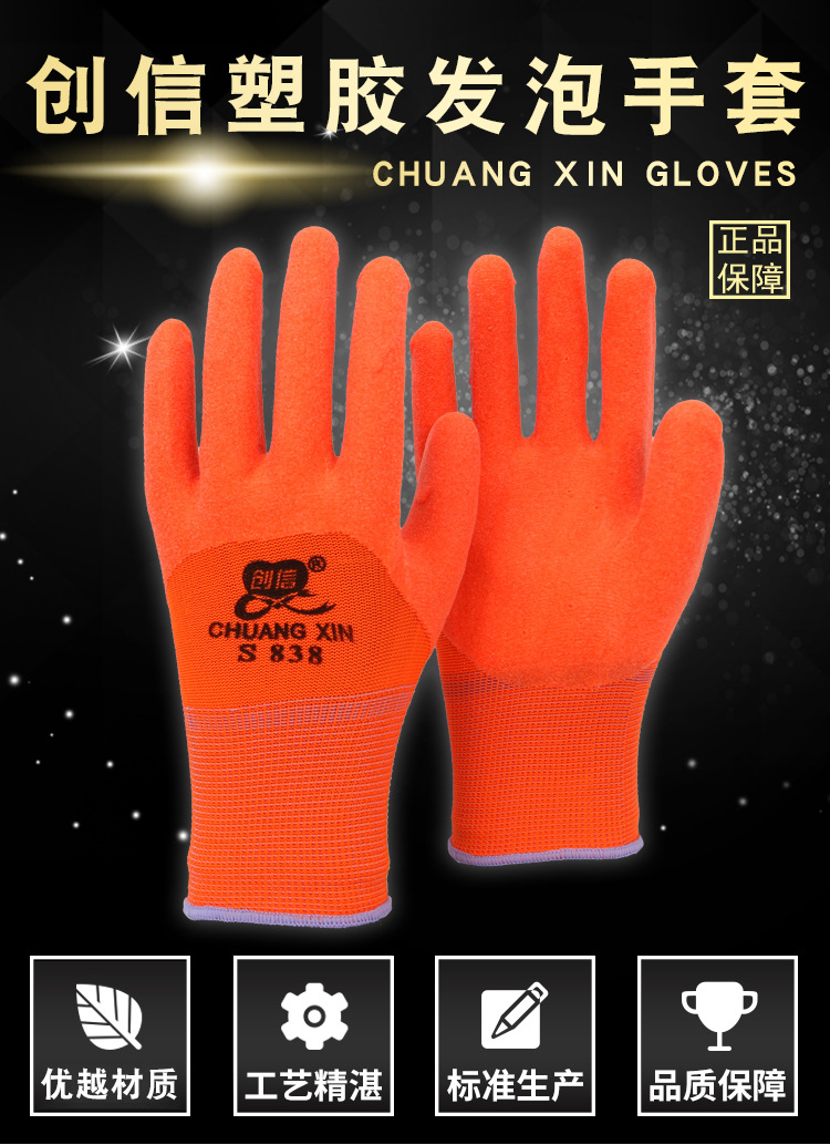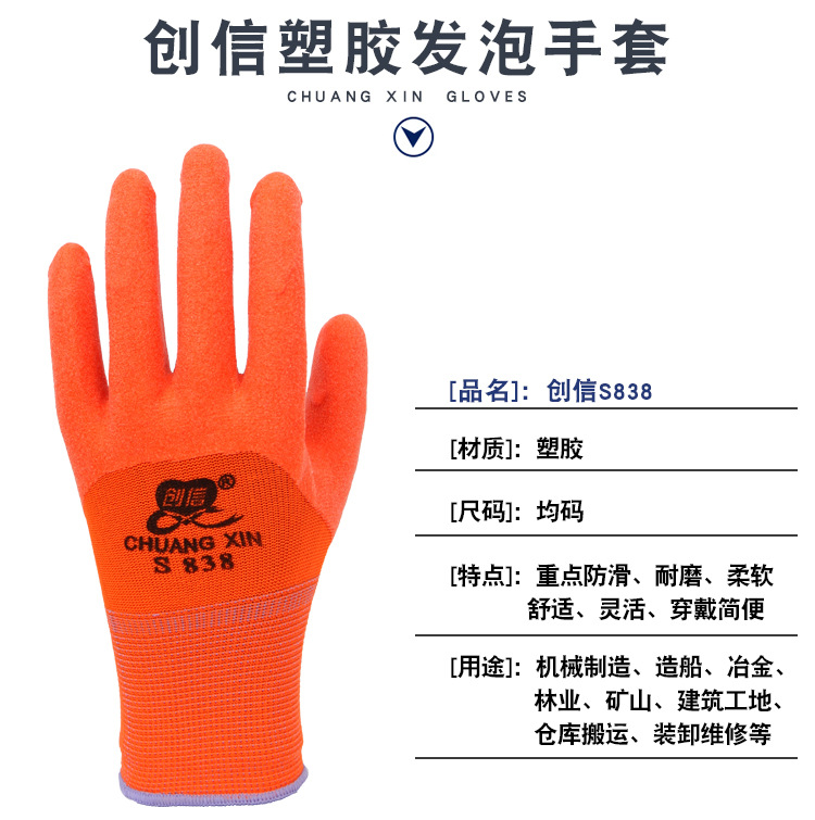 정품 Chuangxin S838 플라스틱 폼 디퍼 교수형 접착제 노동 보호 장갑 내마모성 미끄럼 방지 농장 작업 보호 장갑