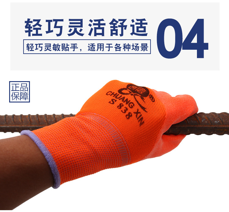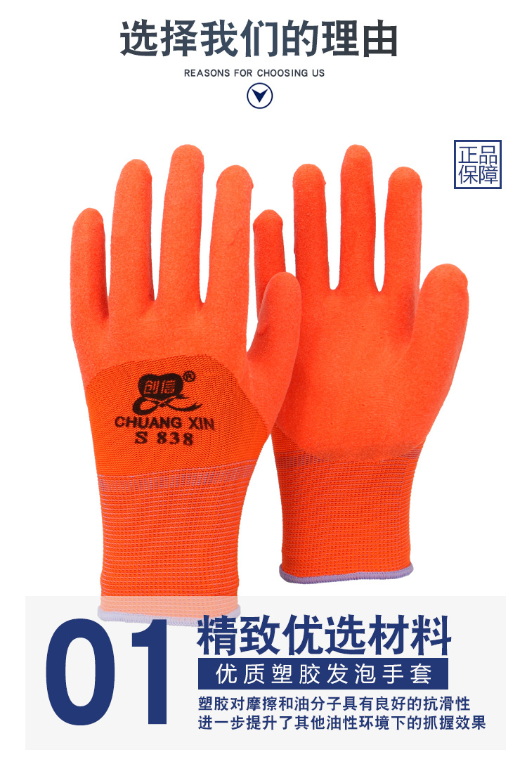 정품 Chuangxin S838 플라스틱 폼 디퍼 교수형 접착제 노동 보호 장갑 내마모성 미끄럼 방지 농장 작업 보호 장갑스토어 가기