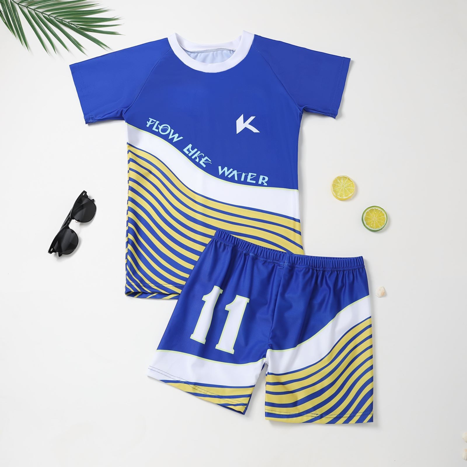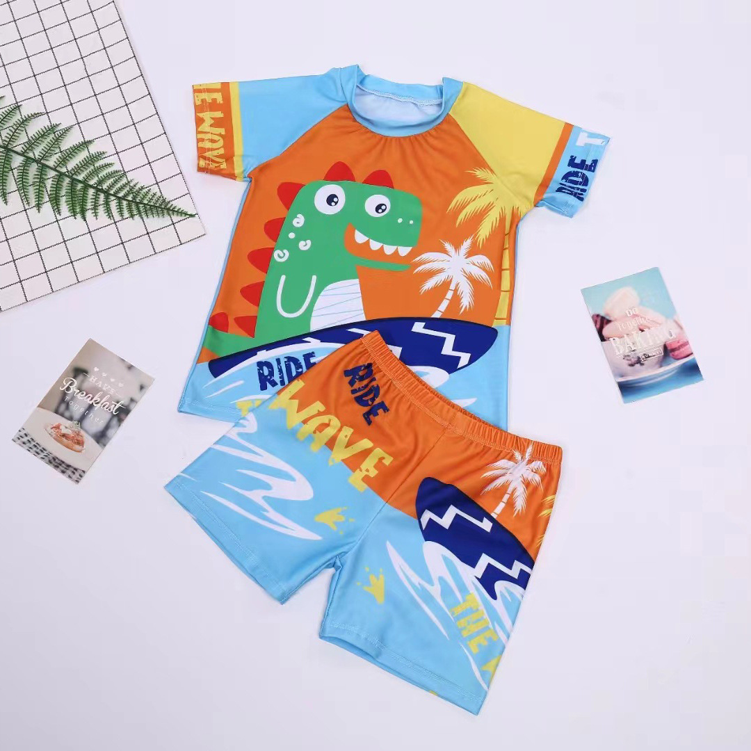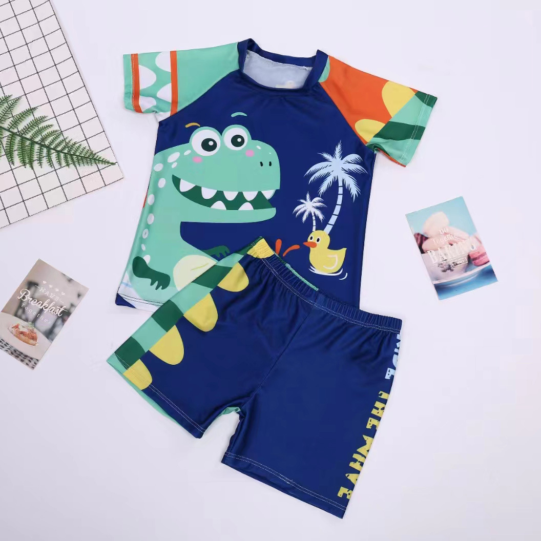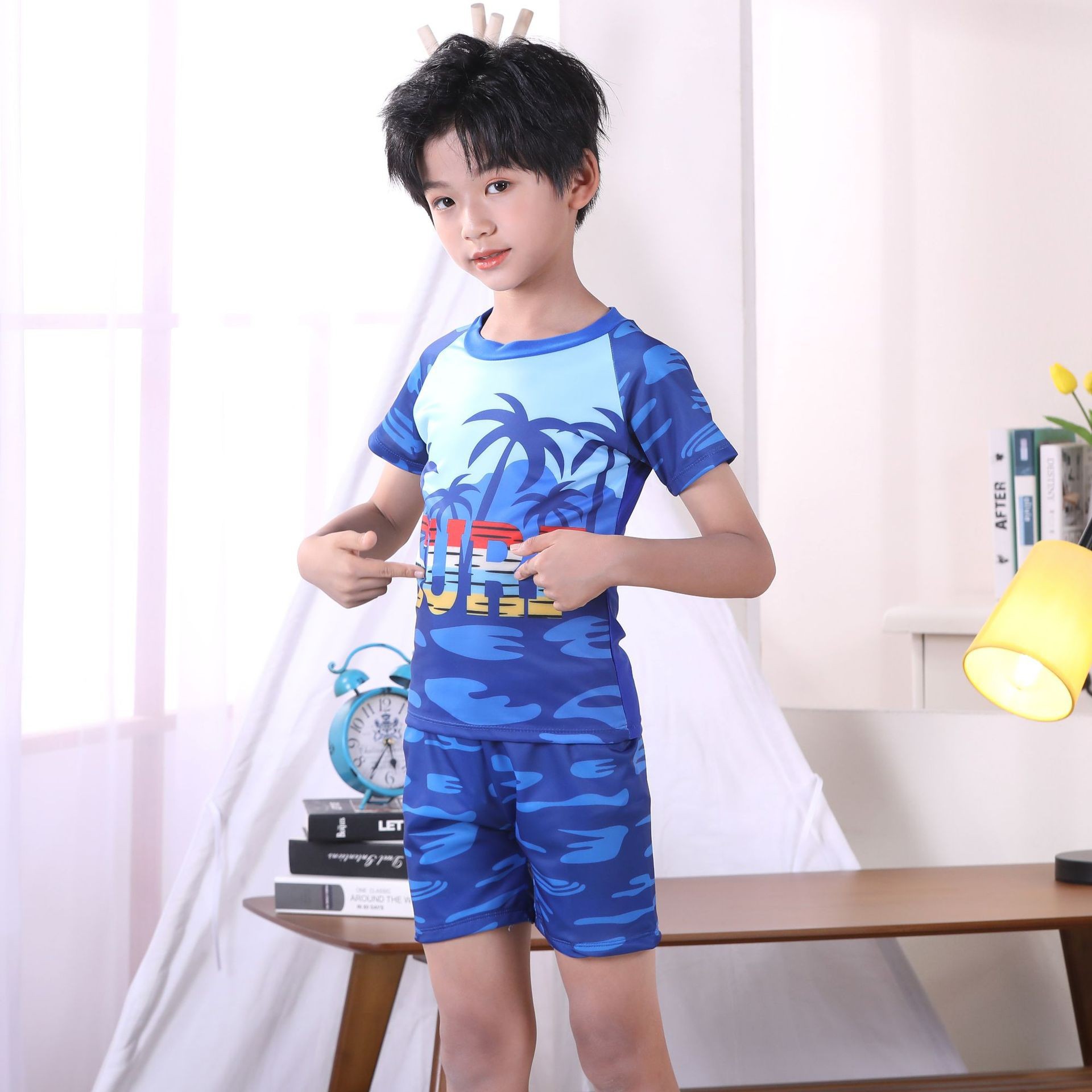 새로운 어린이 수영복 소년 원피스 만화 귀여운 태양 보호 소년 바오 학생 서핑 수영복 온천 수영복