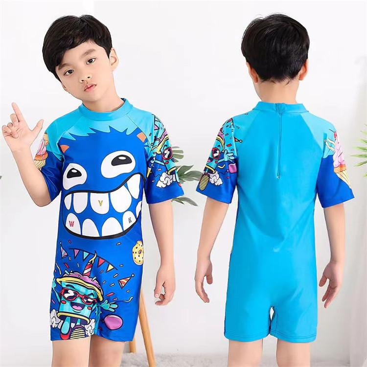 새로운 어린이 수영복 소년 원피스 만화 귀여운 태양 보호 소년 바오 학생 서핑 수영복 온천 수영복스토어 가기