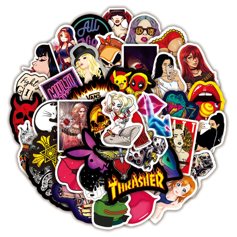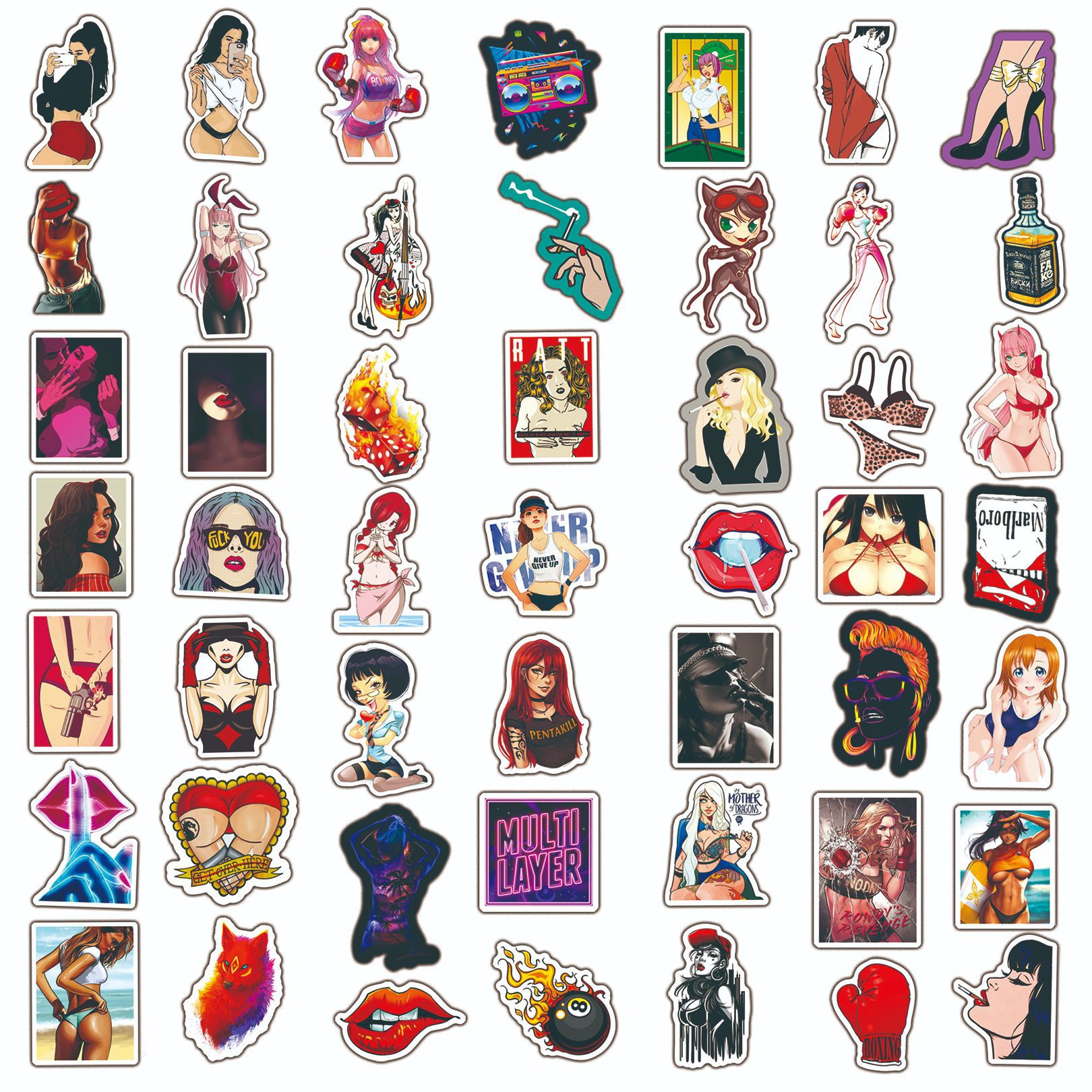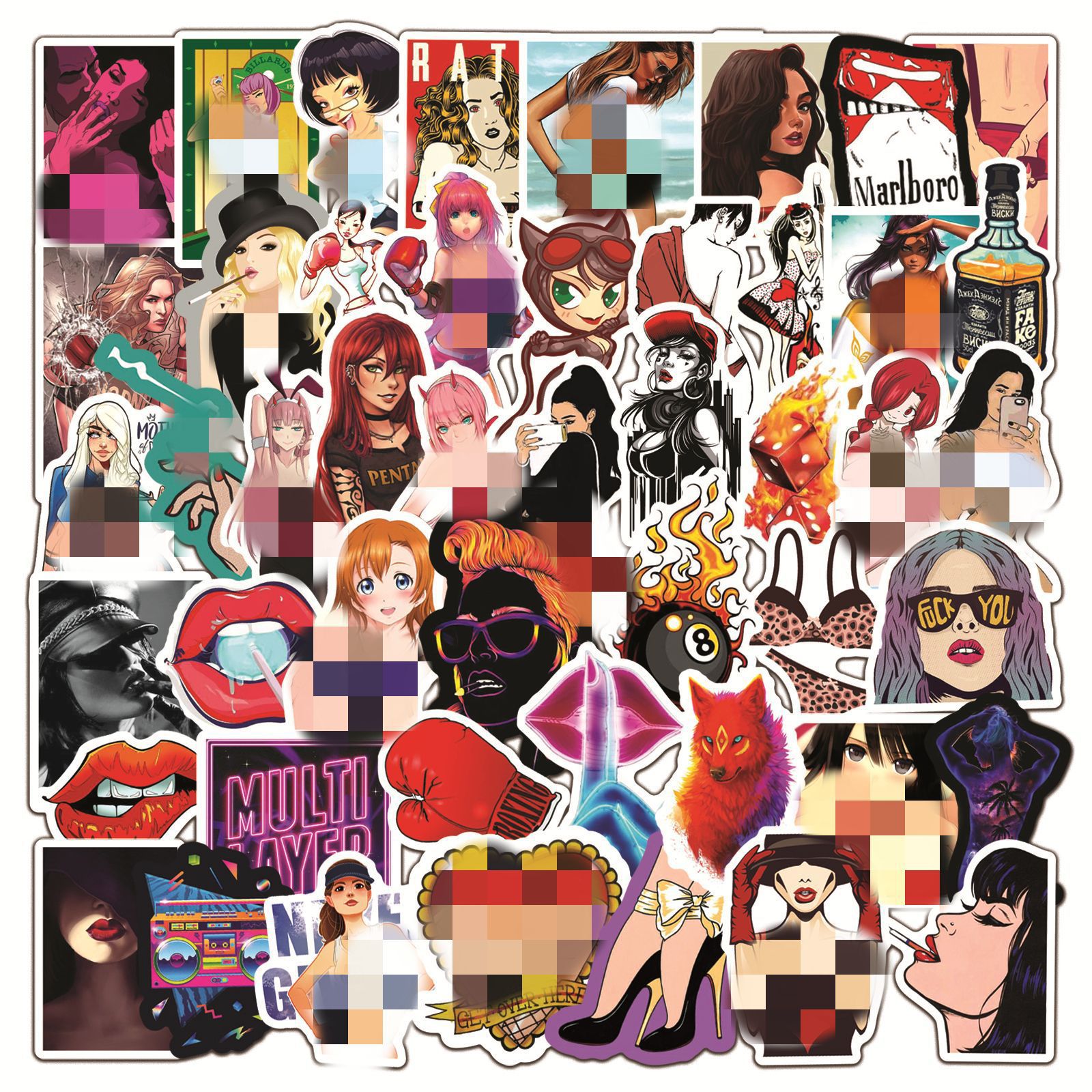 50 리만 소녀 낙서 스티커 물 컵 스쿠터 전기 자동차 냉장고 물 컵 방수 전기 자동차 스티커