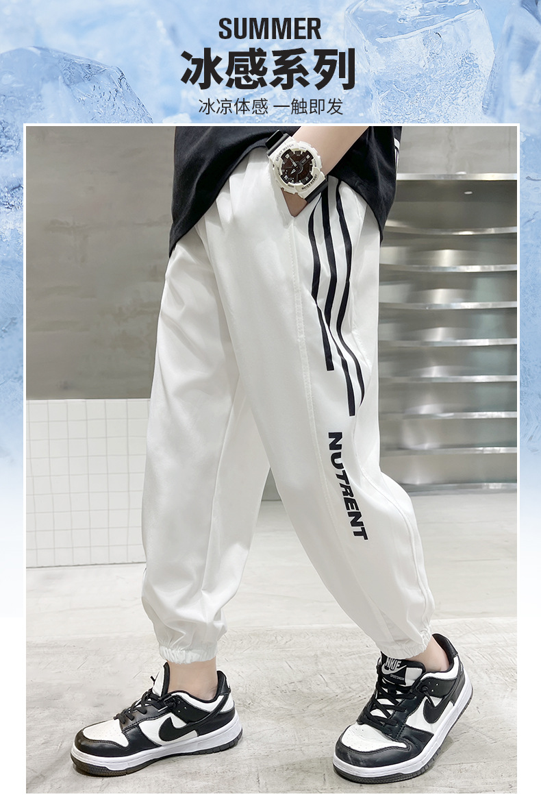 2024 새로운 여름 얇은 어린이 소년 아이스 실크 바지 빠른 건조 스포츠 바지 여름 모기 방지 바지