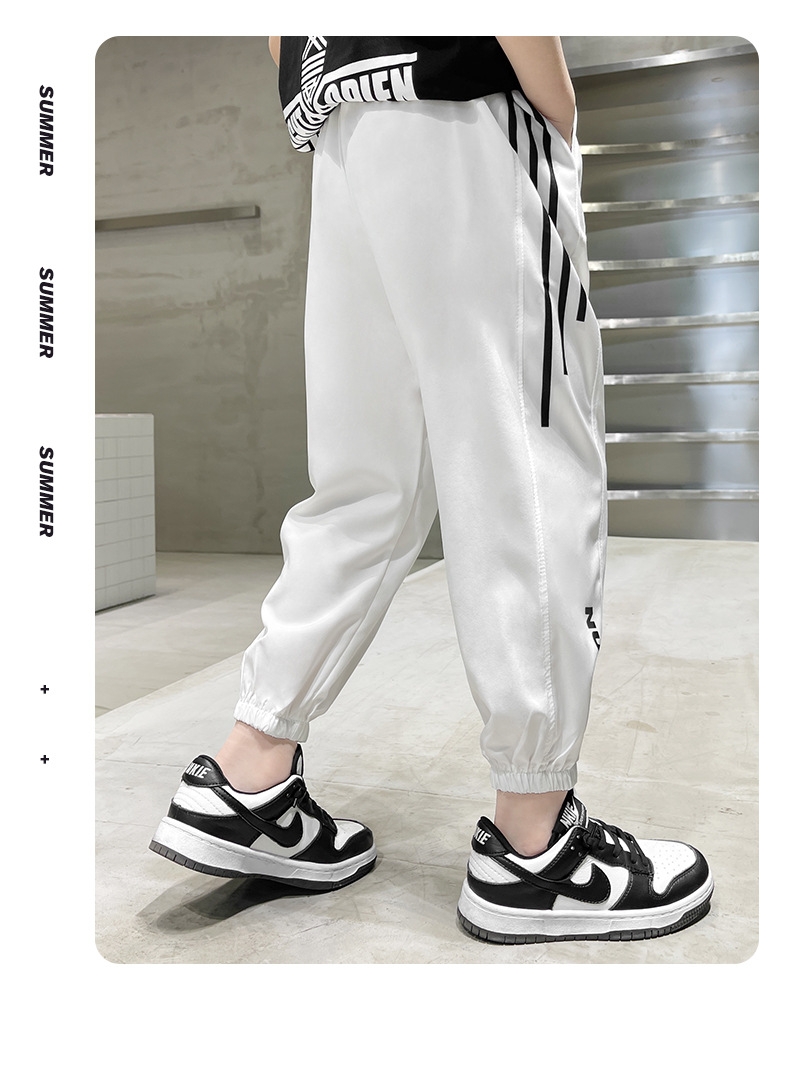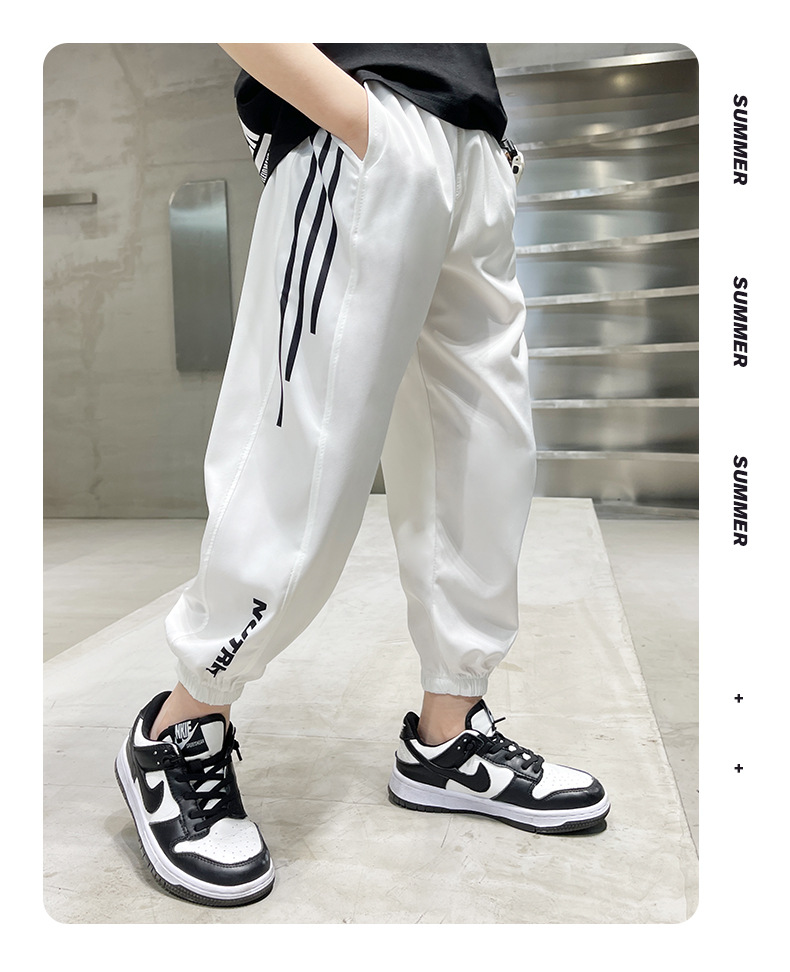 2024 새로운 여름 얇은 어린이 소년 아이스 실크 바지 빠른 건조 스포츠 바지 여름 모기 방지 바지스토어 가기