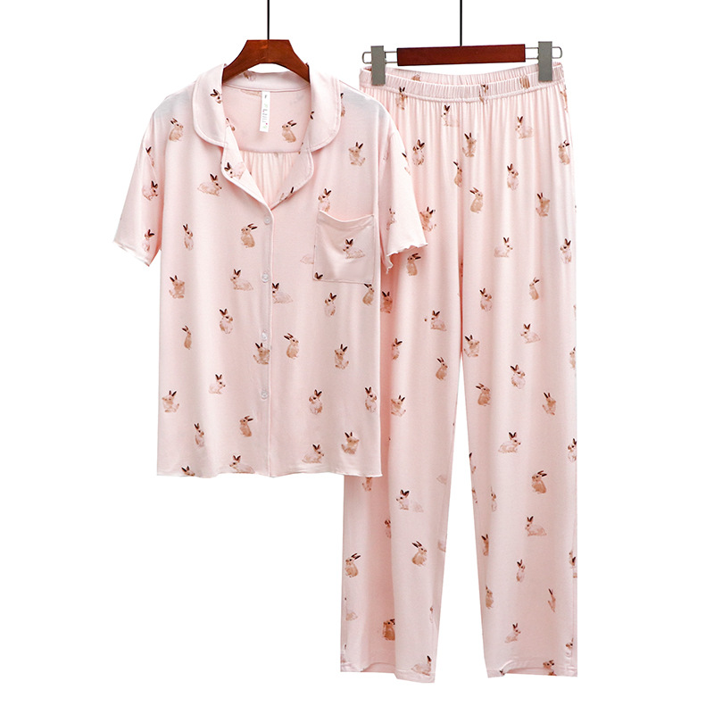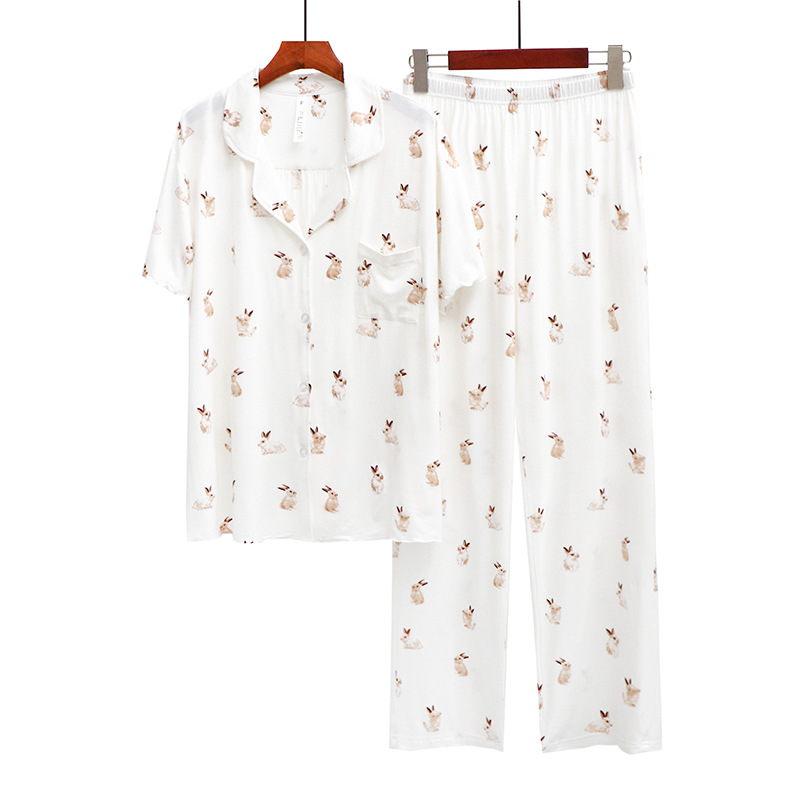 Modal 새로운 여자의 만화 일본 스타일 옷깃 카디건 반팔 바지 느슨한 캐주얼 가정 옷 세트 잠옷 여성