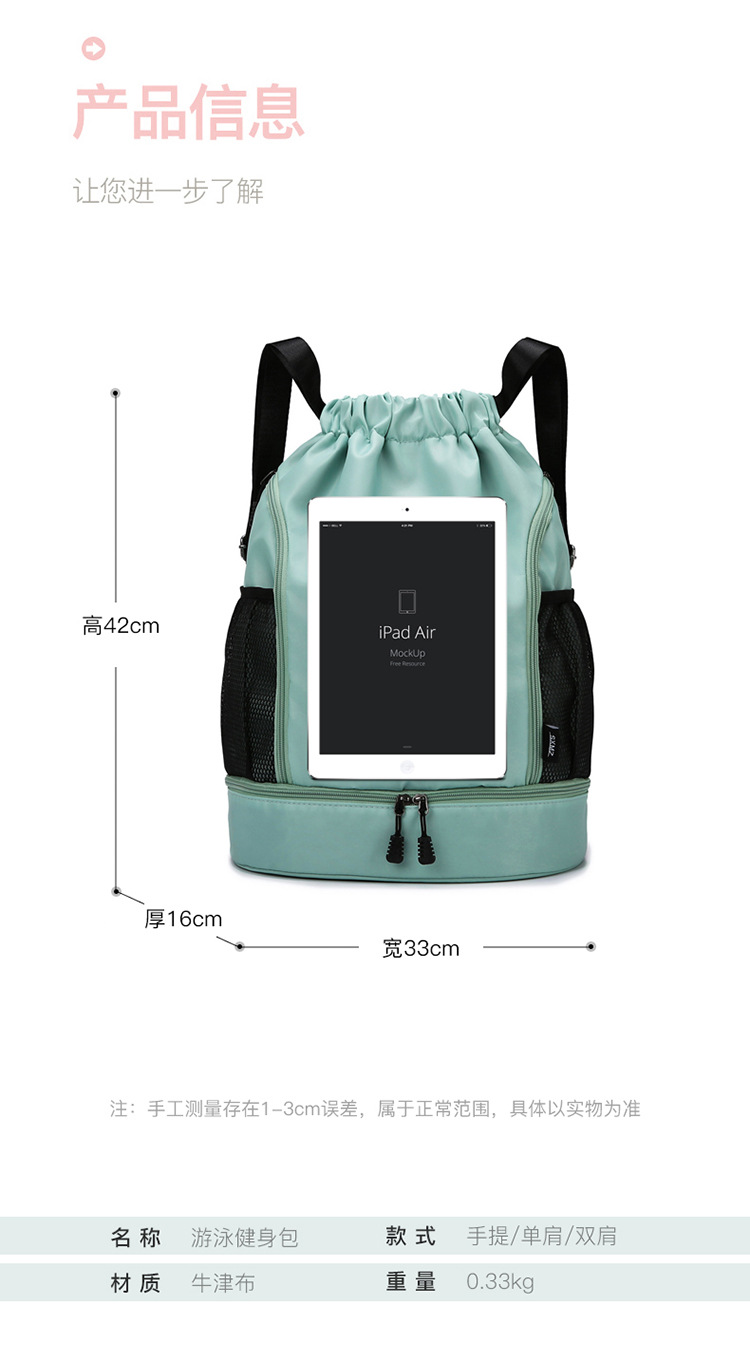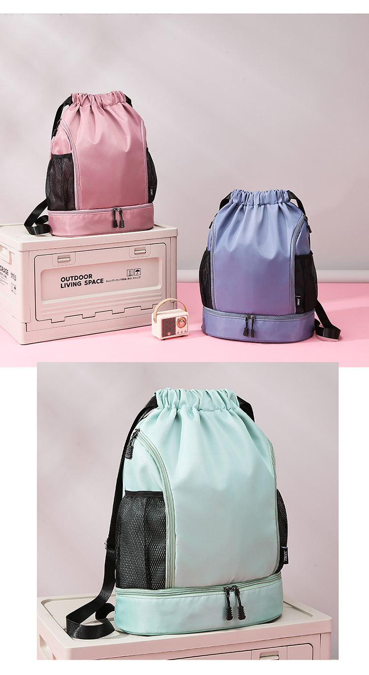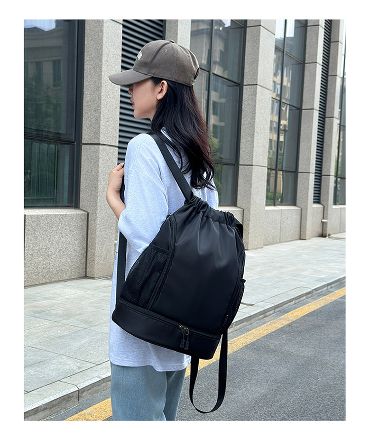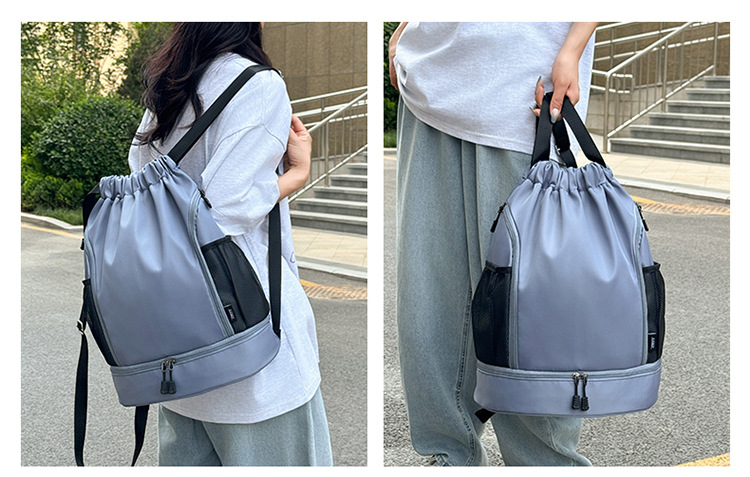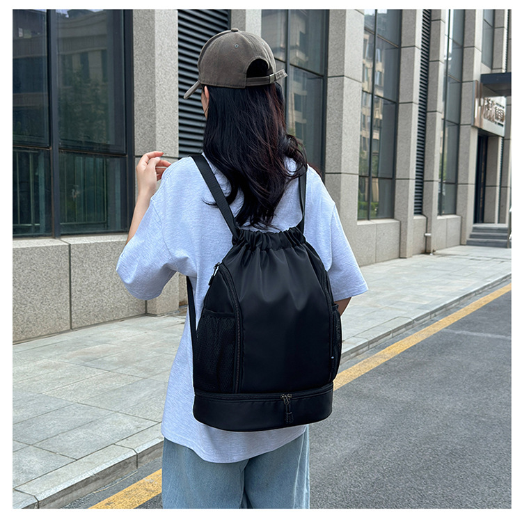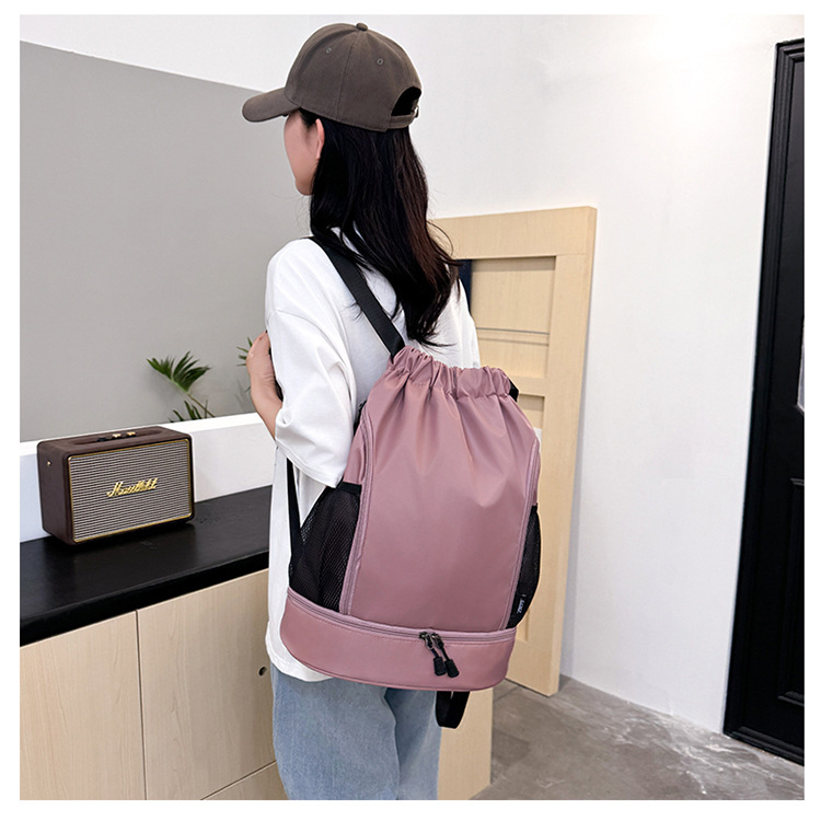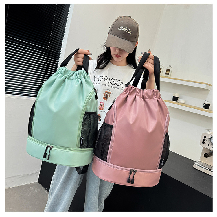 피트니스 백팩 경량 옥스포드 천 버킷 백 건조 및 습식 분리 된 신발 빈 요가 스포츠 가방 대용량 수하물 가방