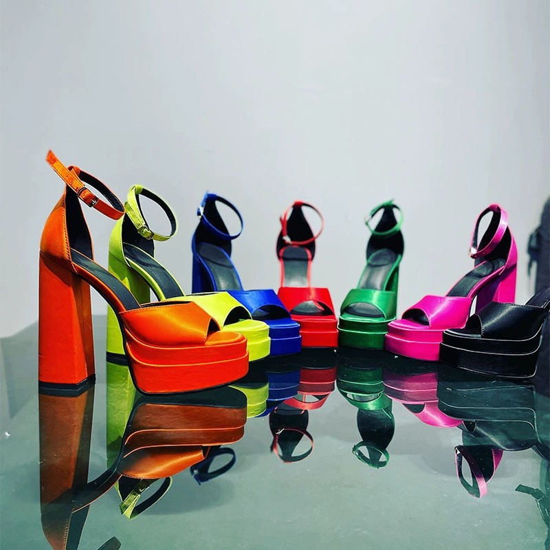 유럽과 미국의 대외 무역 새로운 여름 숙녀 광장 이중 방수 플랫폼 슈퍼 하이힐 증오 하늘 높은 쇼 제조 업체 도매