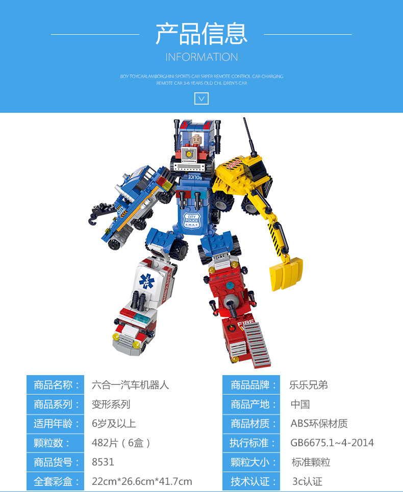자동차 호환 레고 엔지니어링 조립 빌딩 블록 어린이 소년 유익한 지능 장난감 6-in -1 변형 가능한 맞춤 로봇스토어 가기