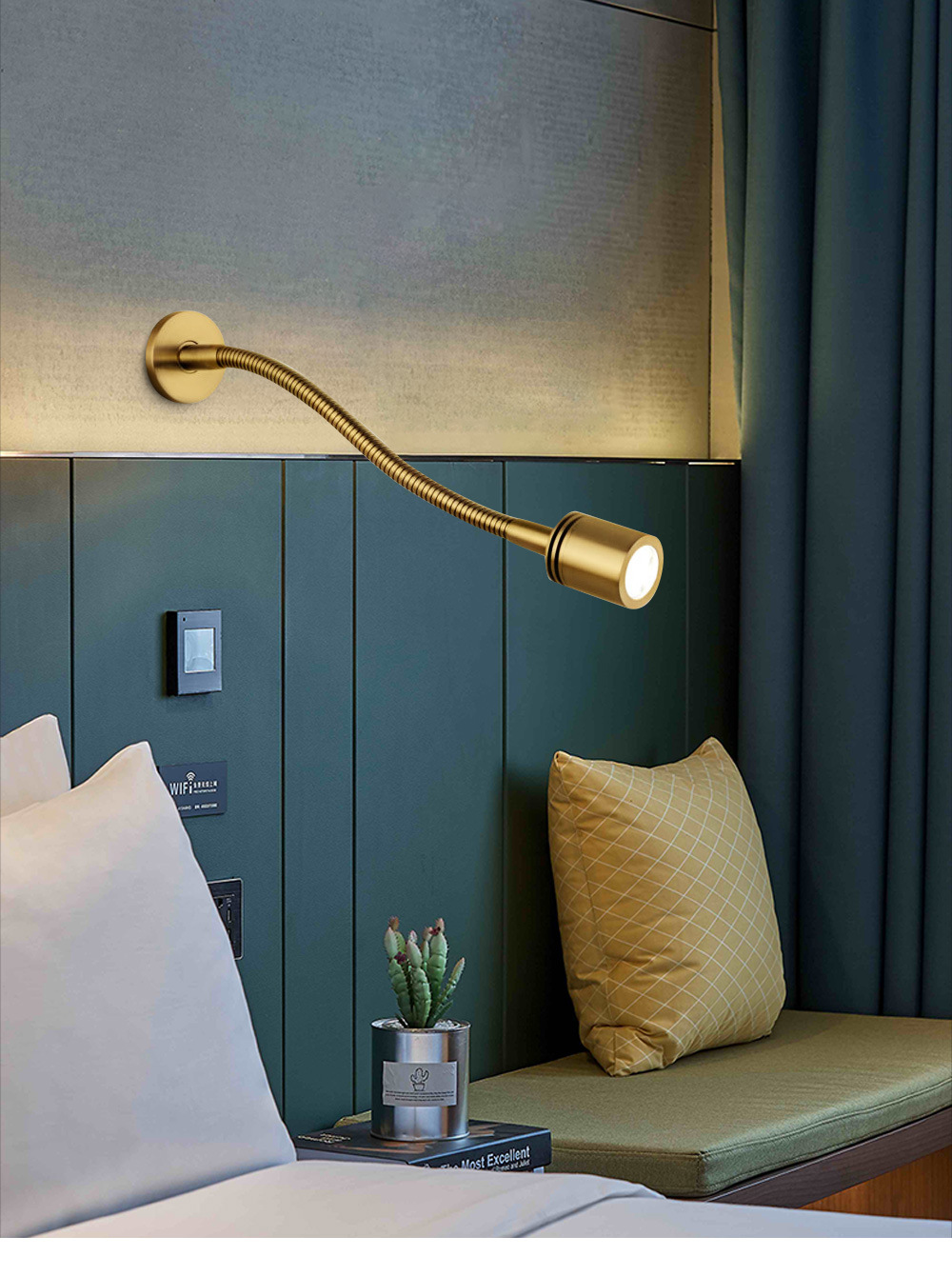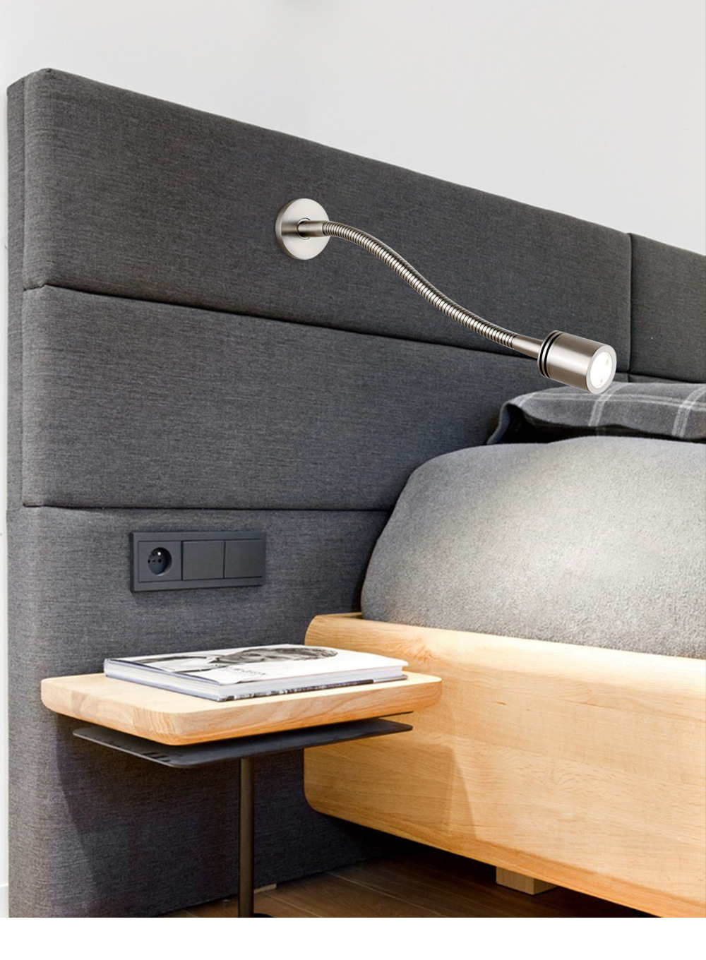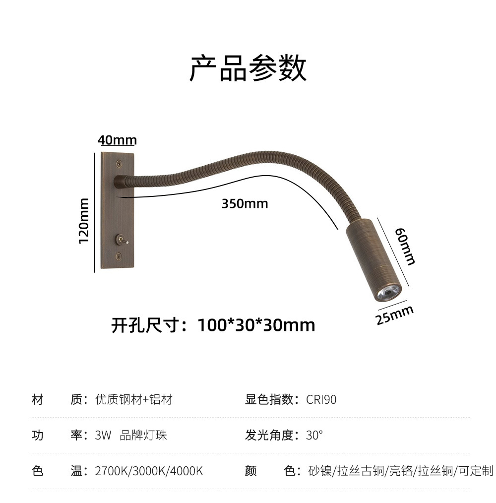 크로스-국경 재고 간단한 침실 침대 옆 스포트라이트 오픈 피팅 호텔 엔지니어링 구즈넥 호스 LED 독서 벽 램프