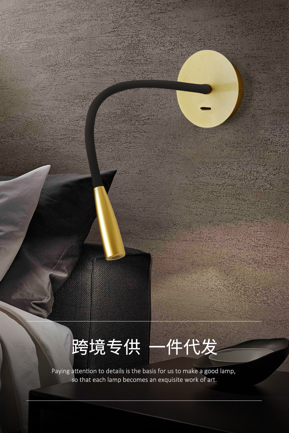 크로스-국경 재고 간단한 침실 침대 옆 스포트라이트 오픈 피팅 호텔 엔지니어링 구즈넥 호스 LED 독서 벽 램프스토어 가기