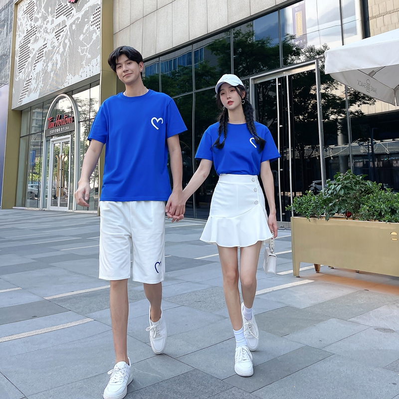 커플 여름 2022 새로운 대학 스타일 남성과 여성의 반팔 캐주얼 플러스 사이즈 루즈한 세트 티셔츠스토어 가기