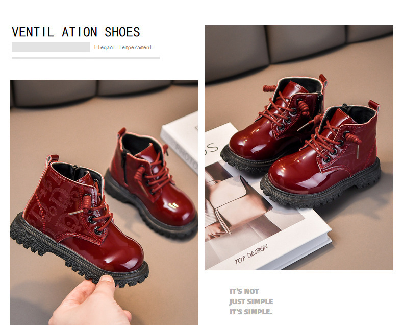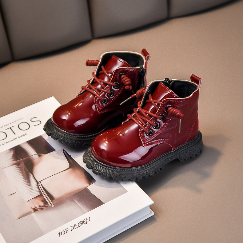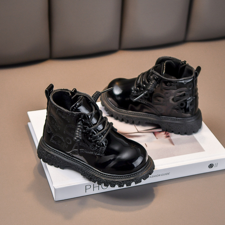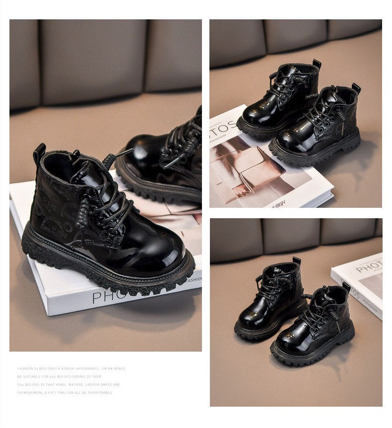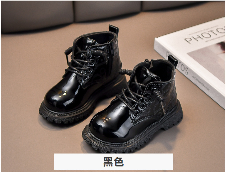 봄과 가을 어린이 마틴 부츠 특허 가죽 2025 새로운 짧은 부츠 소녀 부츠 소년 어린이 가죽 부츠 대외 무역 부드러운 밑창 부츠