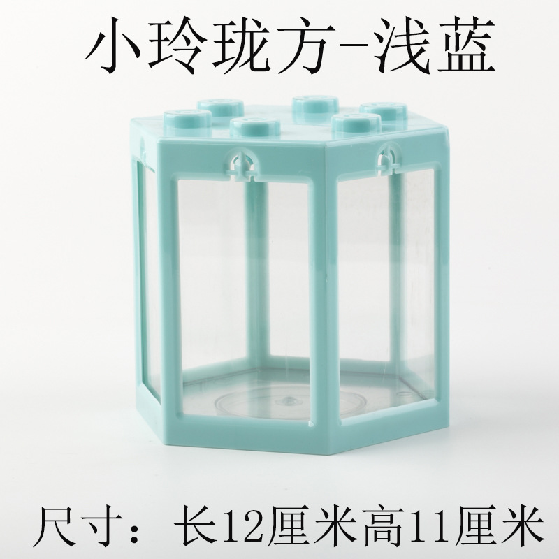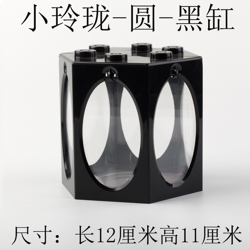데스크탑 어항 타이 도우 물고기 작은 장식용 물고기 라이브 애완 동물 겹침 레고 블록 실린더 6 구멍 높은 투명