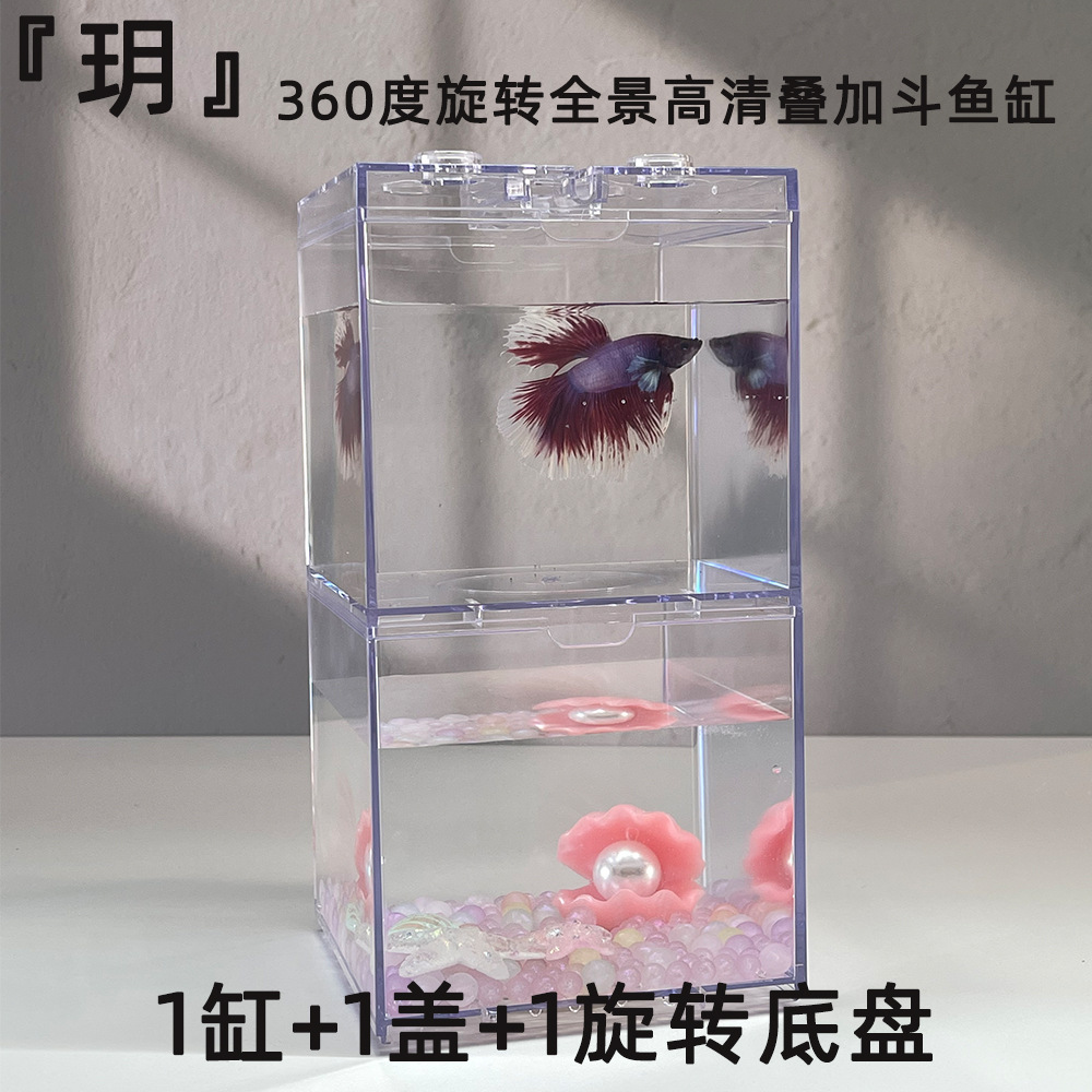 데스크탑 어항 타이 도우 물고기 작은 장식용 물고기 라이브 애완 동물 겹침 레고 블록 실린더 6 구멍 높은 투명스토어 가기