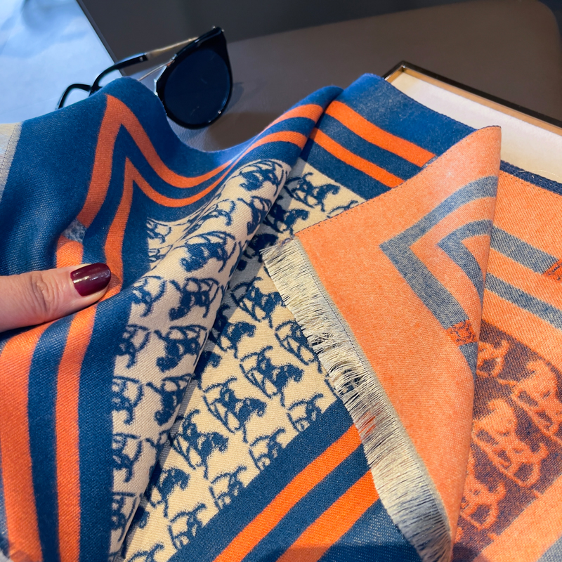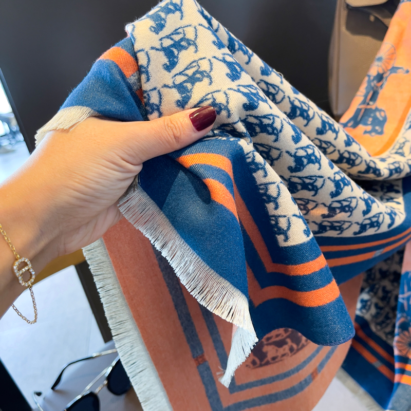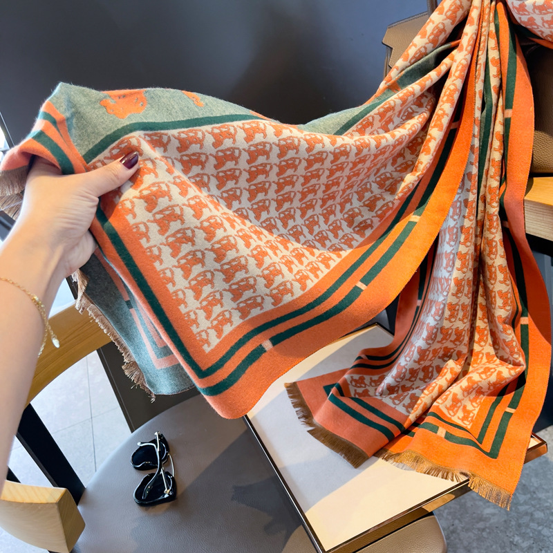 고급 캐리지 모조 캐시미어 스카프 여성용 가을과 겨울 두꺼운 따뜻한 이중 목적 에어컨 룸 숄 모든 매치 한국식 스카프