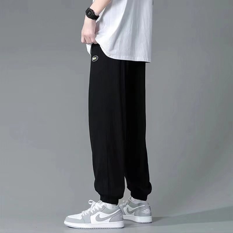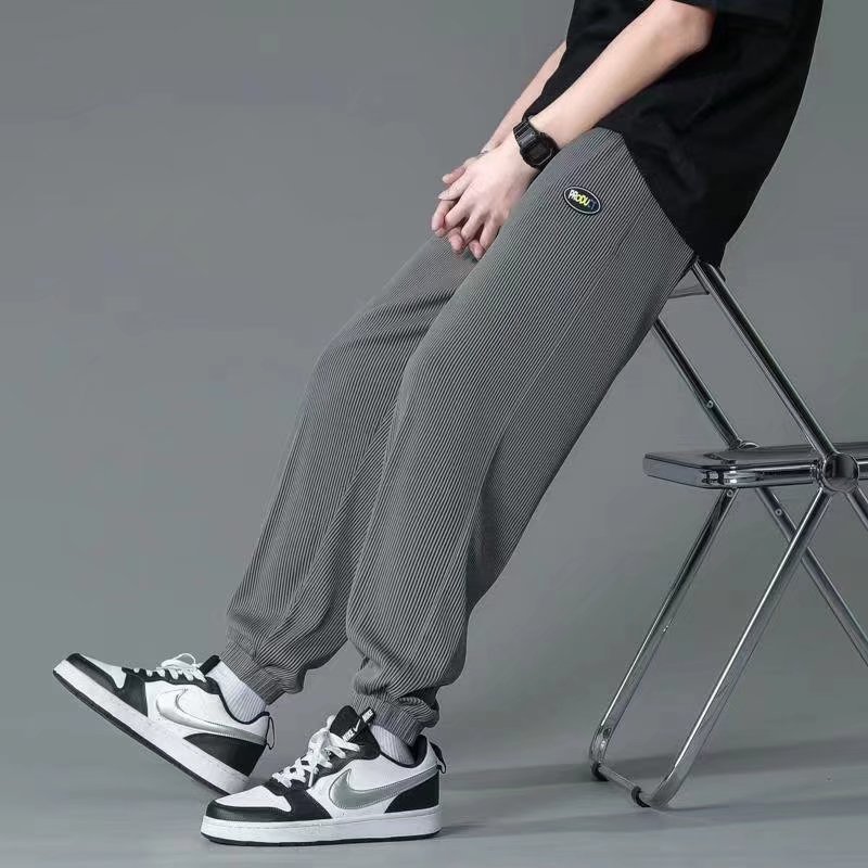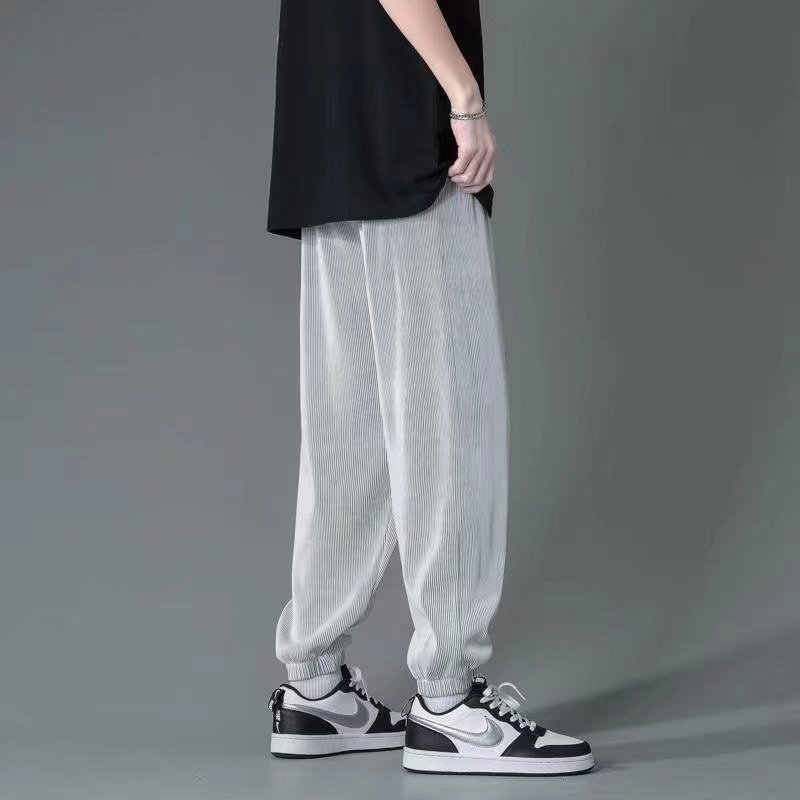 여름 얇은 아이스 실크 캐주얼 스포츠 바지 남성용 한국식 트렌디 올매치 루즈한 플러스 사이즈 일자 바지스토어 가기