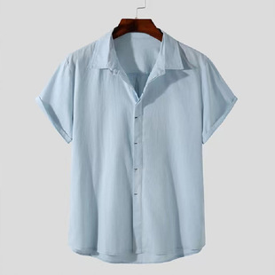 국경 대외 무역 공급 셔츠 남성 2024 새로운 유럽과 미국 패션 단색 느슨한 싱글 브레스트 긴팔 옷깃 셔츠스토어 가기