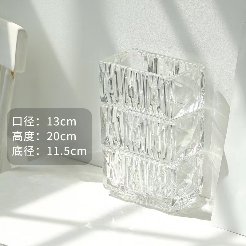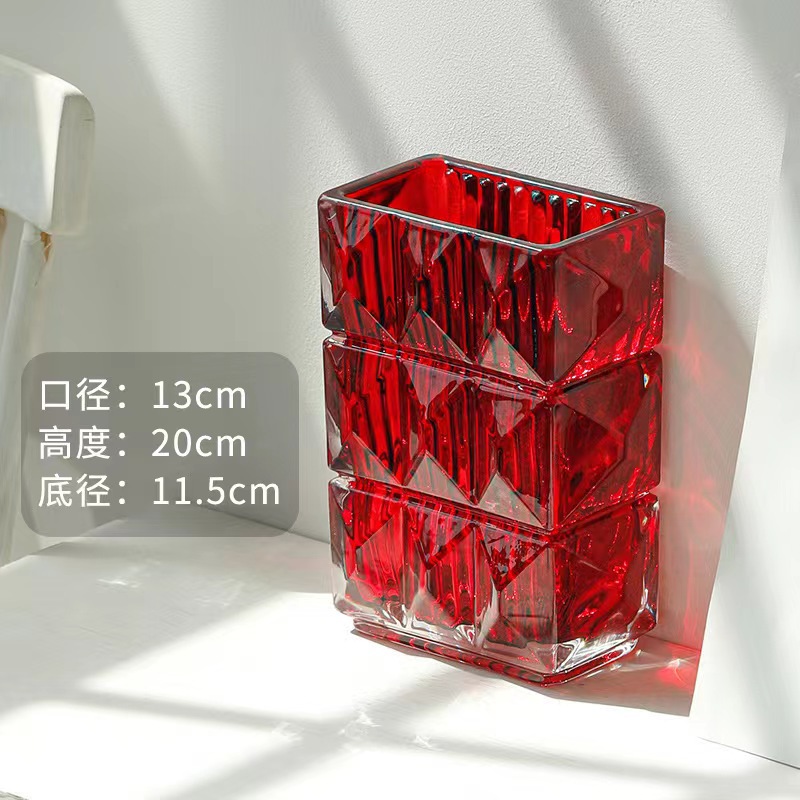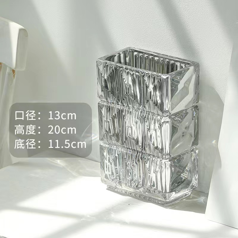 브릴리언트 루소 크리스탈 스퀘어 두꺼운 유리 꽃병 꽃 배열 물 높이기 꽃 침실 식탁 TV 장식품스토어 가기