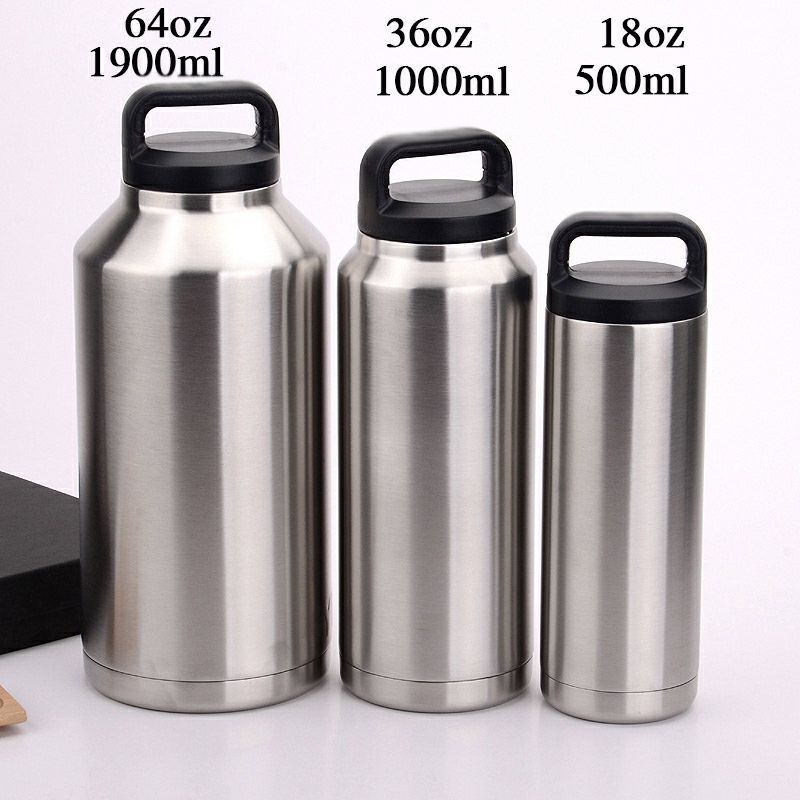 진공 플라스크 대형 빈 냄비 스테인레스 스틸 진공 컵 자동차 여행 주전자 등산 스포츠 냄비 1000ml 얼음 양동이