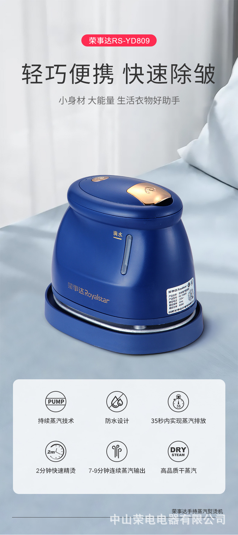 Rongshida (Royalstar) 휴대용 다리미기 스팀 전기 다림질 소형 플랫 다림질 휴대용 다림질 옷
