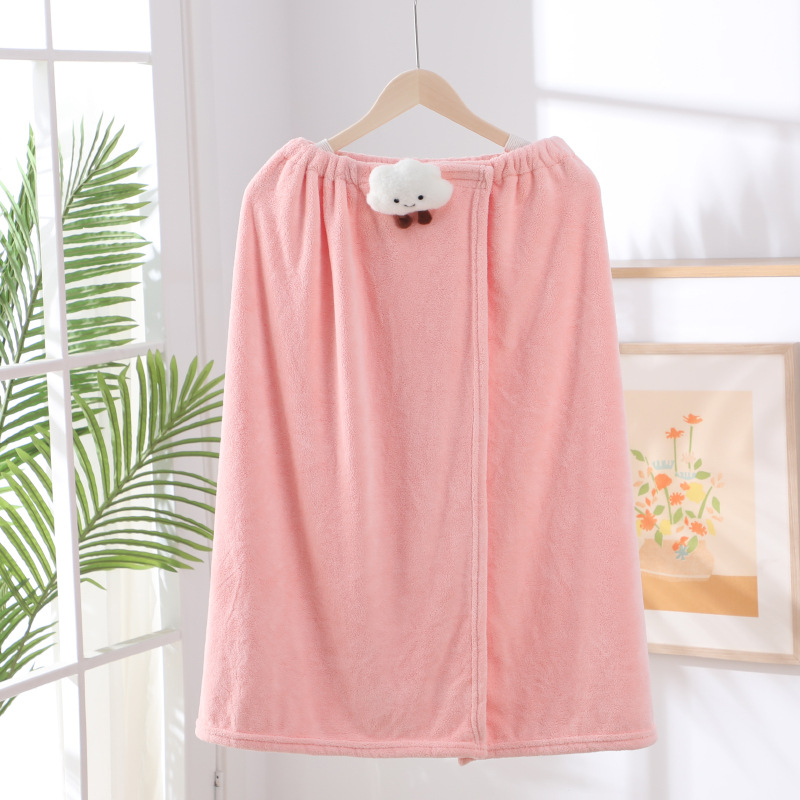 목욕 스커트 드라이 헤어 모자 투피스 세트 착용 및 포장 가능 여성용 튜브 탑 목욕 타월 산호 양털 귀여운 만화 인형 목욕 가운 도매스토어 가기
