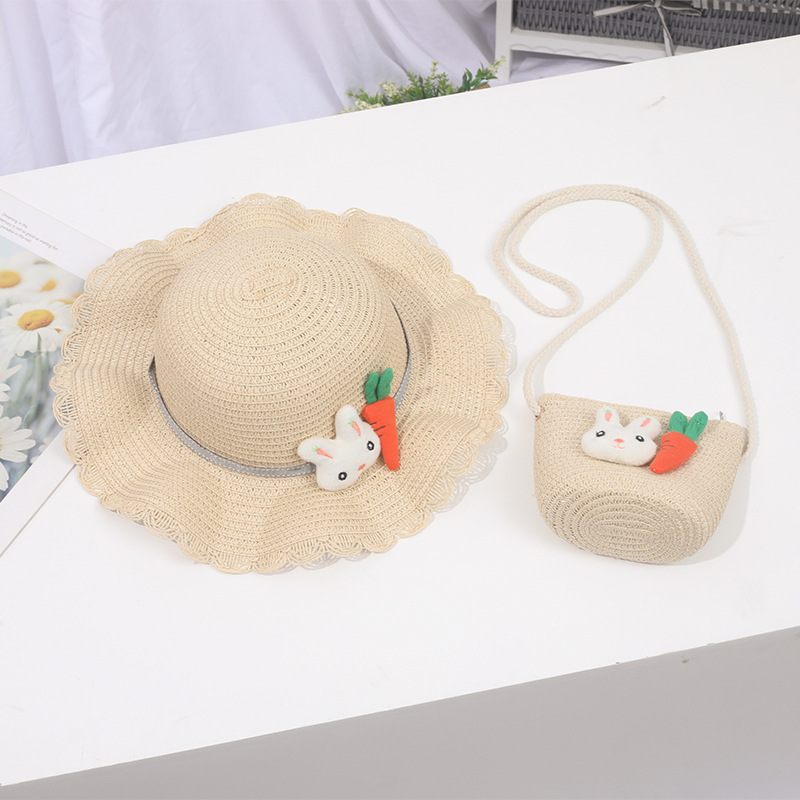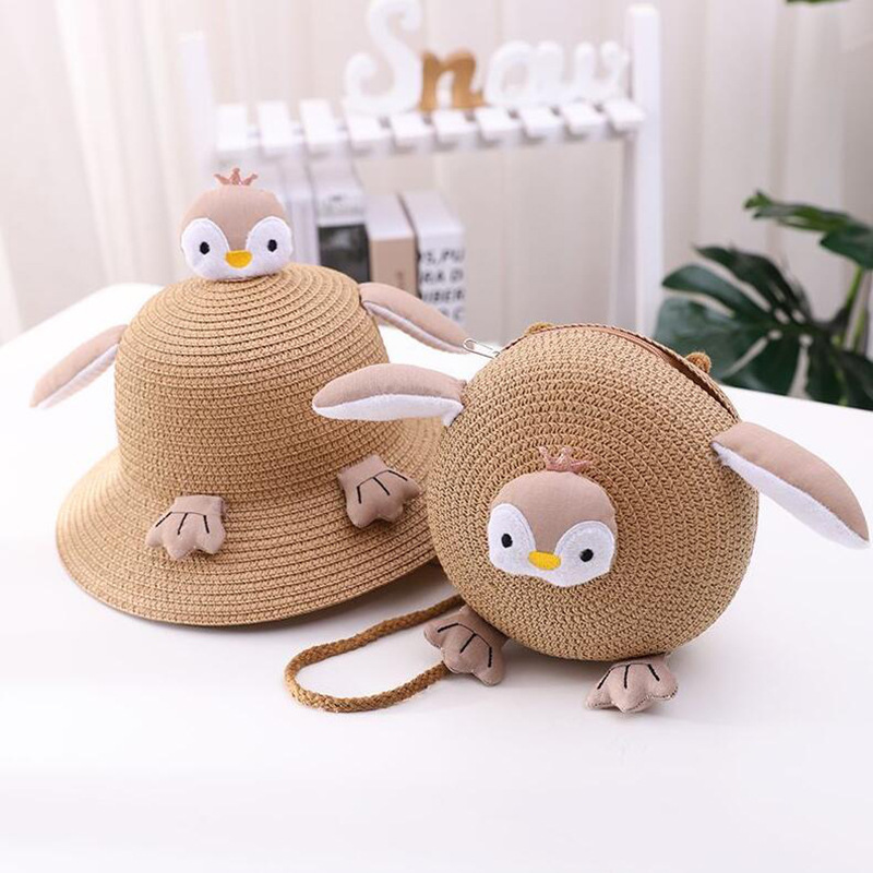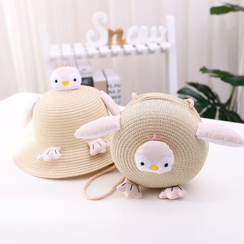 작은 신선한 가방 자외선 차단제 태양 모자 어린이 여름 해변 모자 웨이브 밀짚 모자 태양 모자 6 월 1 일 생일 선물