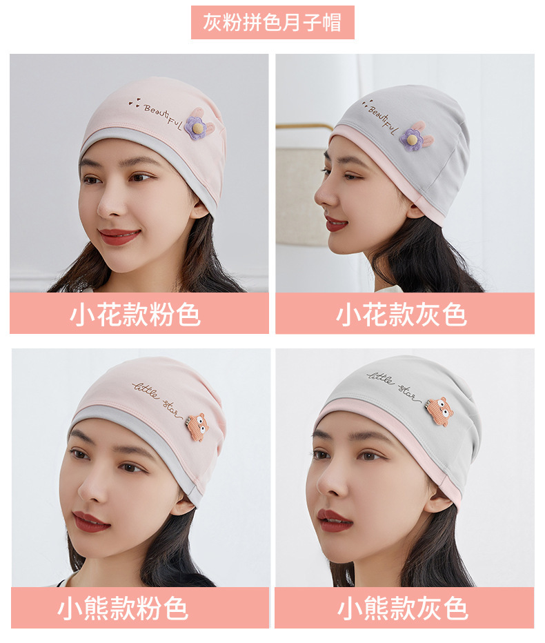 2023 새로운 스타일 출산 모자 면 만화 작은 꽃 곰 달 후드 산후 임산부 달 모자스토어 가기