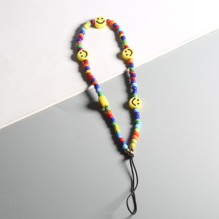 웃는 얼굴 끈 DIY 휴대 전화 케이스 펜던트 수제 구슬 웃는 얼굴 끈 화려한 구슬 짧은 체인 휴대 전화 로프 장식품스토어 가기