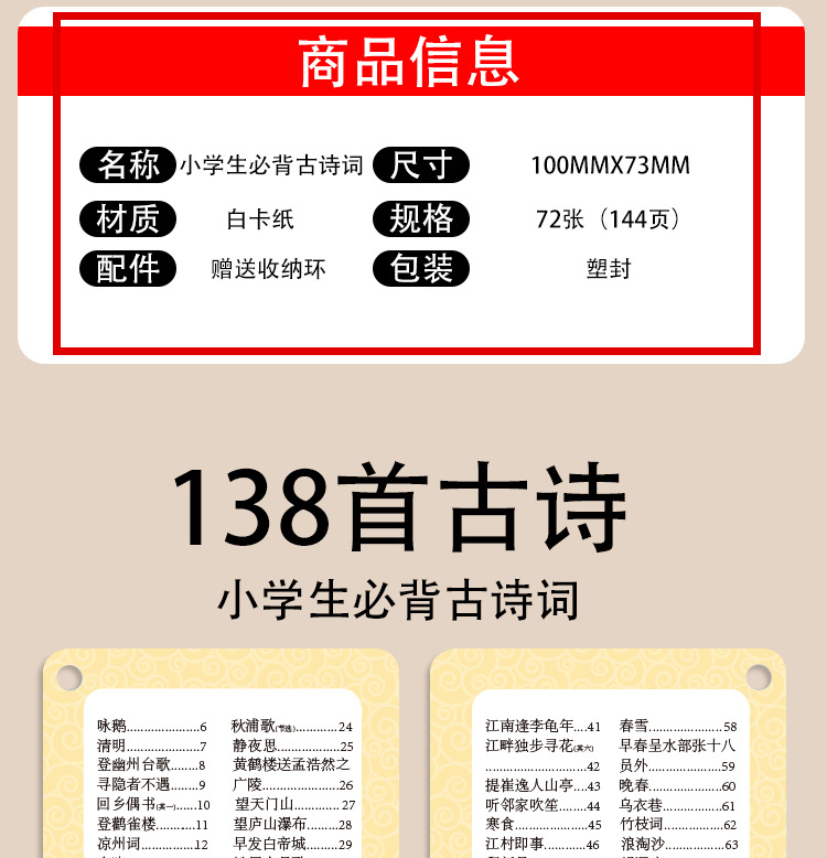 학생들은 1-6 학년을위한 고대시 카드를 암송해야합니다. 중국 교과서 당시와 고대시 암송 메모리 핸드 카드 동기화스토어 가기