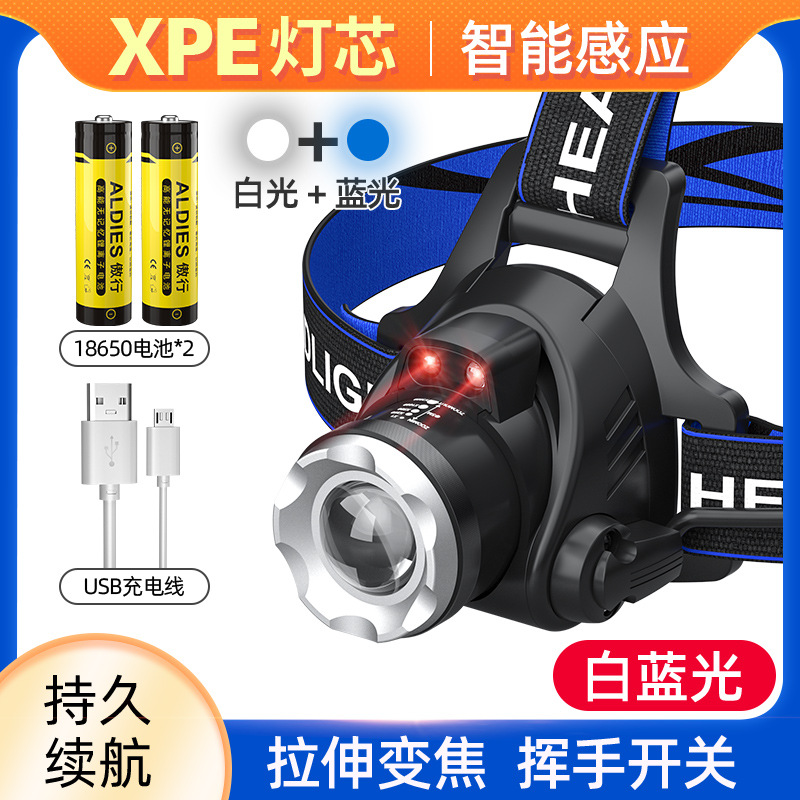 • XPE 인덕션 모델 [듀얼 광원 화이트 + 블루 라이트] 배터리 2 개 + USB 충전 라인