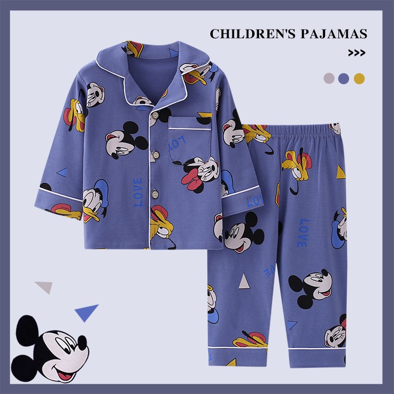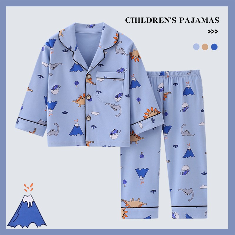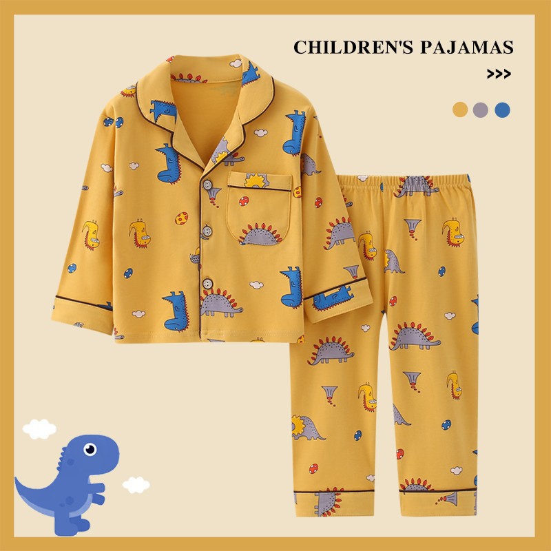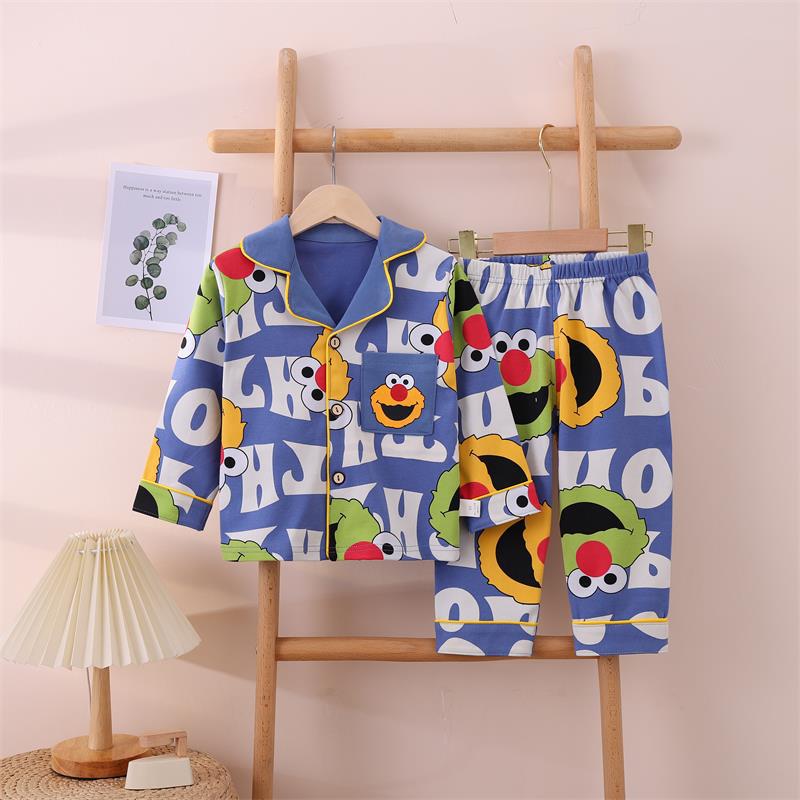 봄과 가을 어린이 잠옷 소년의 순면 긴 소매 중간 및 큰 어린이 소년의 카디건 옷깃 아기의 가정 옷 순면 세트스토어 가기