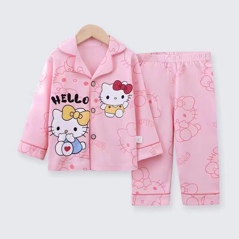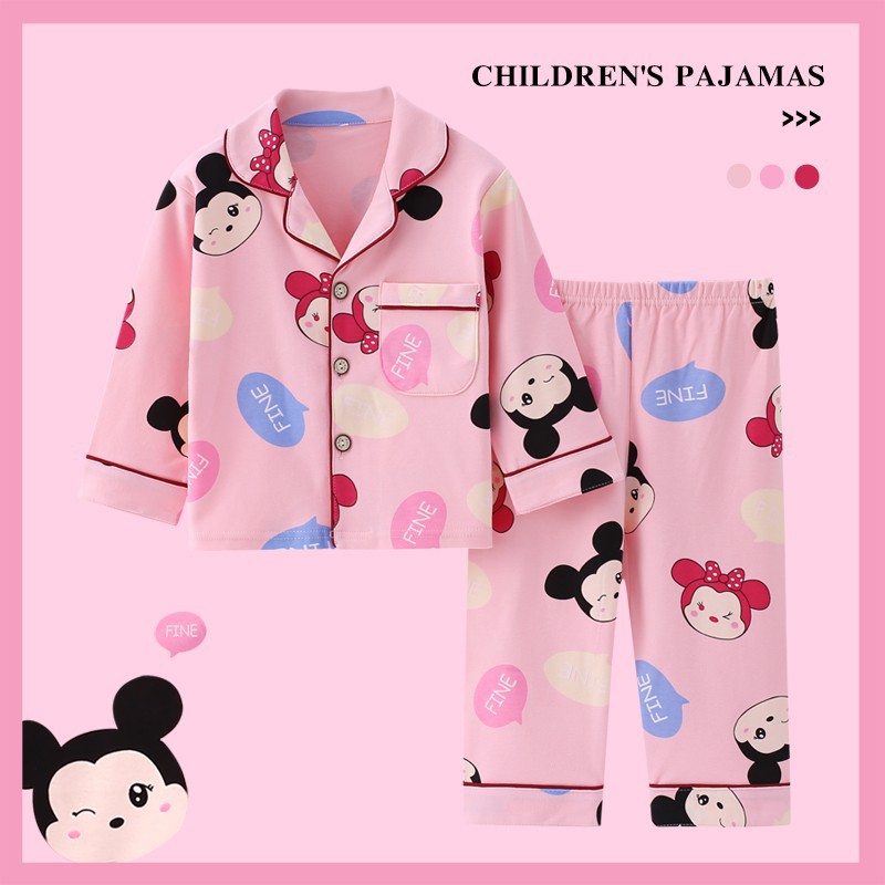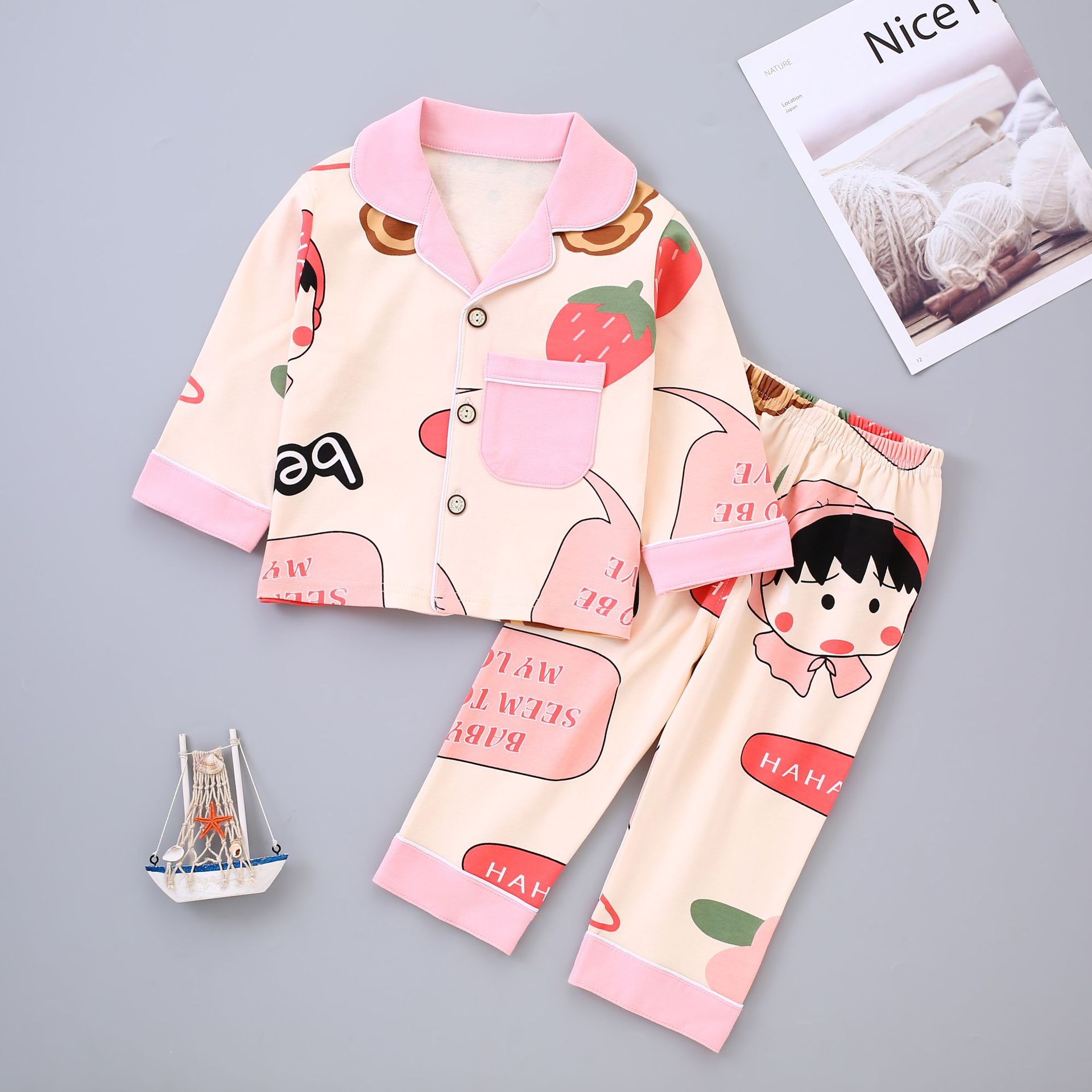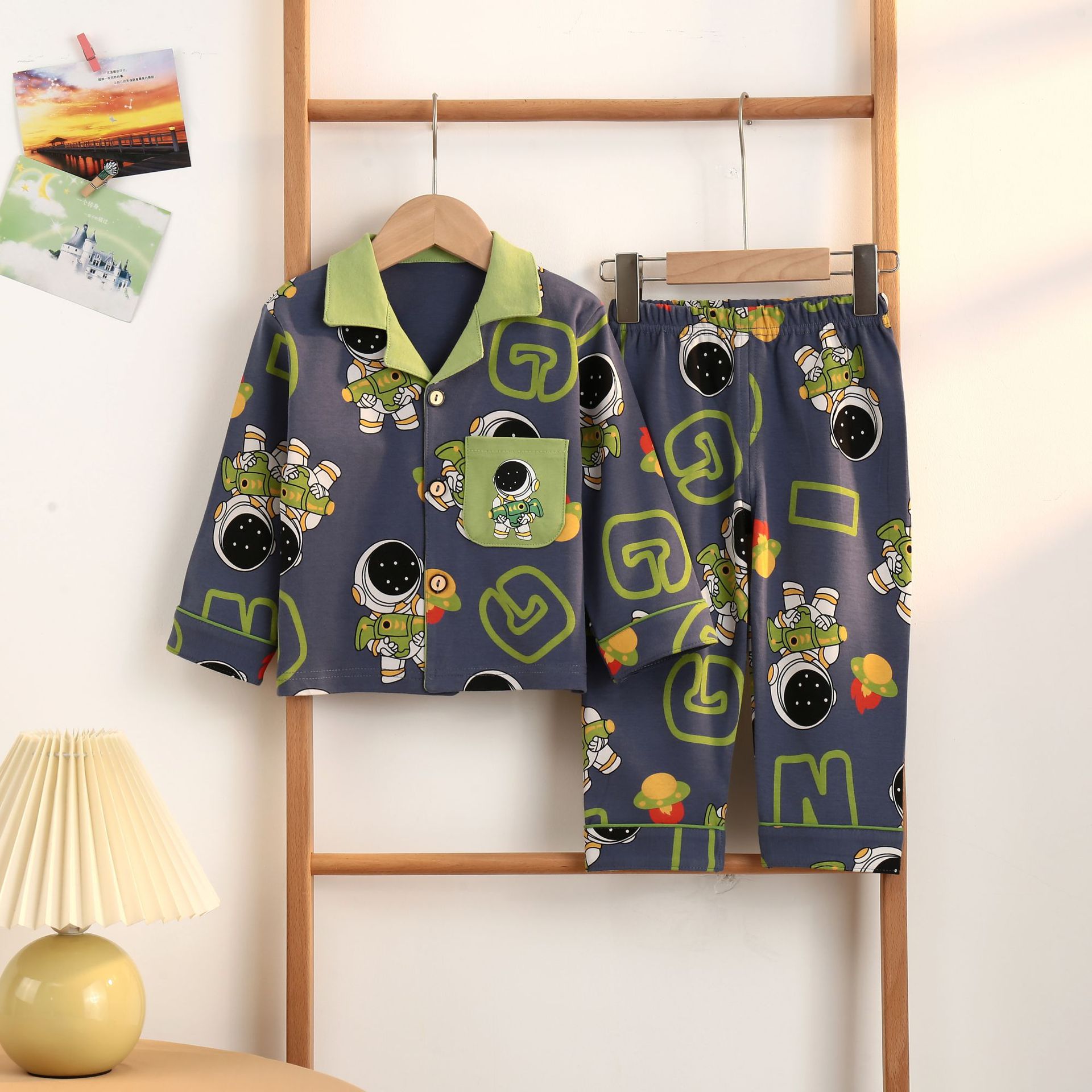 봄과 가을 어린이 잠옷 소년의 순면 긴 소매 중간 및 큰 어린이 소년의 카디건 옷깃 아기의 가정 옷 순면 세트