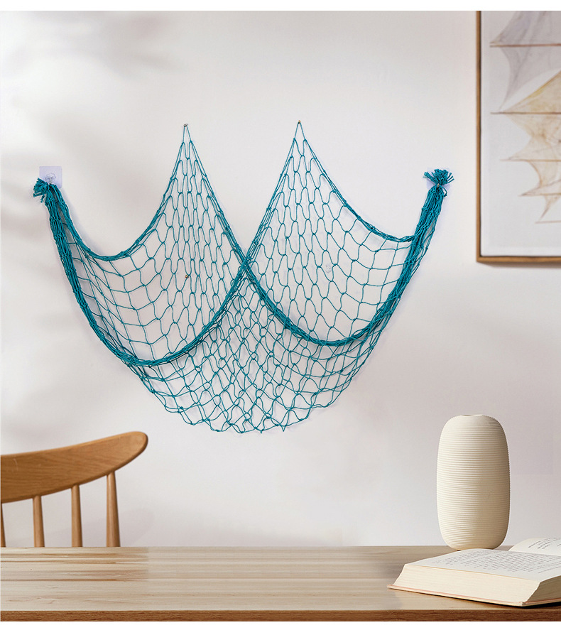 지중해 장식 어망 두꺼운 선 면화와 대마 로프 쉘 그물 유치원 배경 벽 창조적 인 사진 장식 교수형 그물스토어 가기