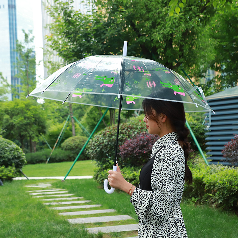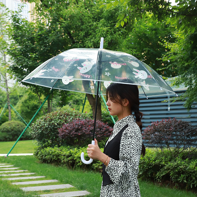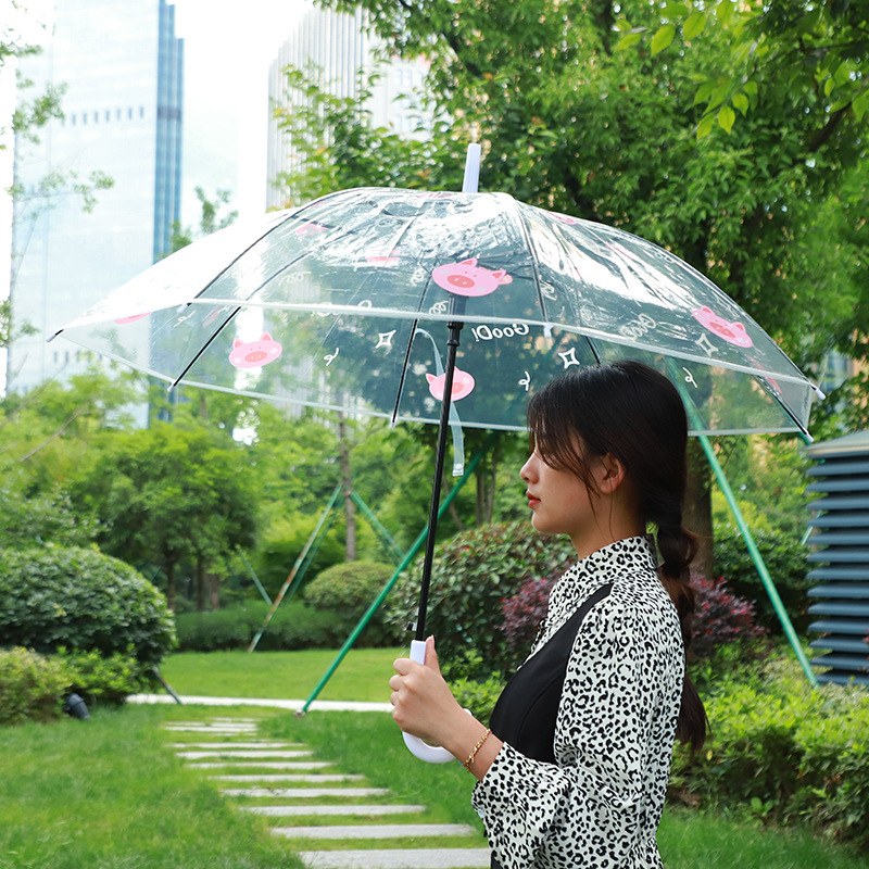 귀여운 만화 동물 인쇄 어린이 투명 우산 한국 스타일 신선한 긴 손잡이 우산 창조적 인 커플 우산