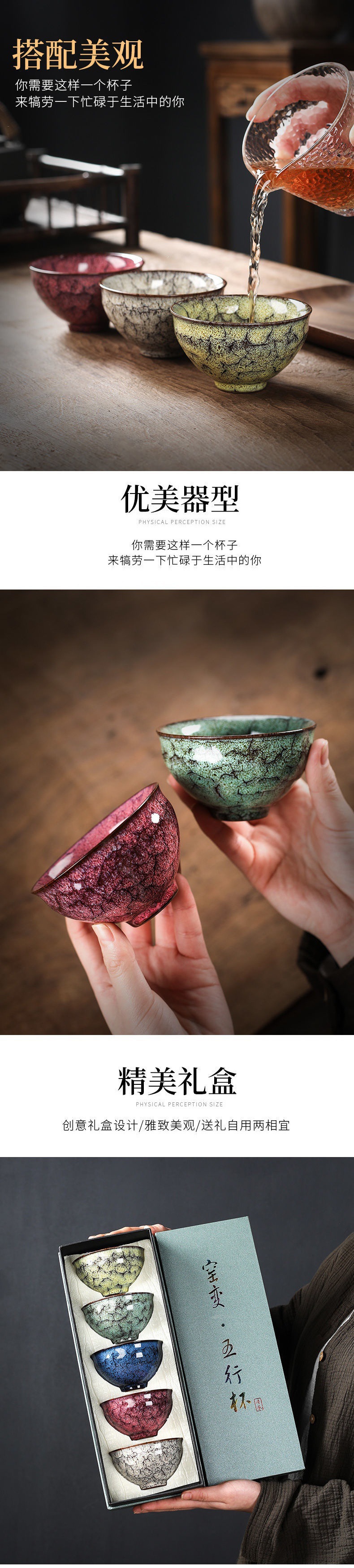 Jianzhan Kiln 변경 5 요소 컵 찻잔 쿵푸 차 세트 세라믹 선물 천무 마스터 컵 선물 상자 마스터 컵 싱글 컵