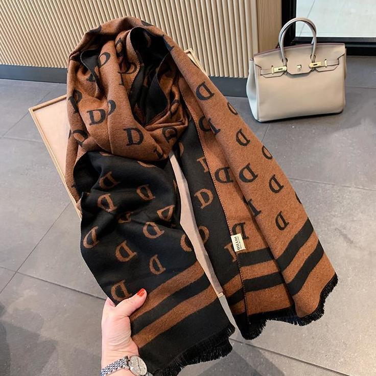 유럽과 미국의 편지 D 모조 캐시미어 스카프 여성의 겨울 에어컨 객실 긴 두꺼운 모든 일치 숄 따뜻한 스카프 도매