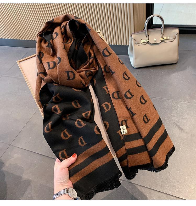 유럽과 미국의 편지 D 모조 캐시미어 스카프 여성의 겨울 에어컨 객실 긴 두꺼운 모든 일치 숄 따뜻한 스카프 도매스토어 가기