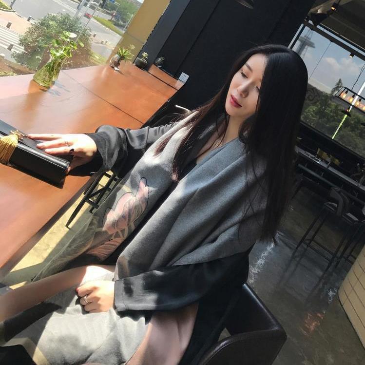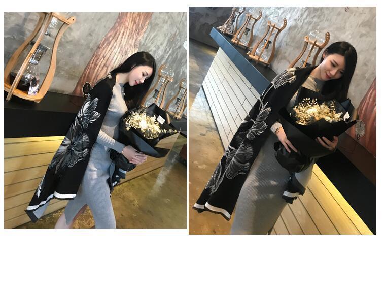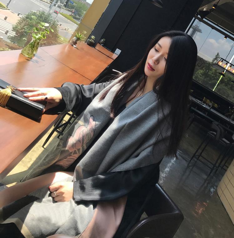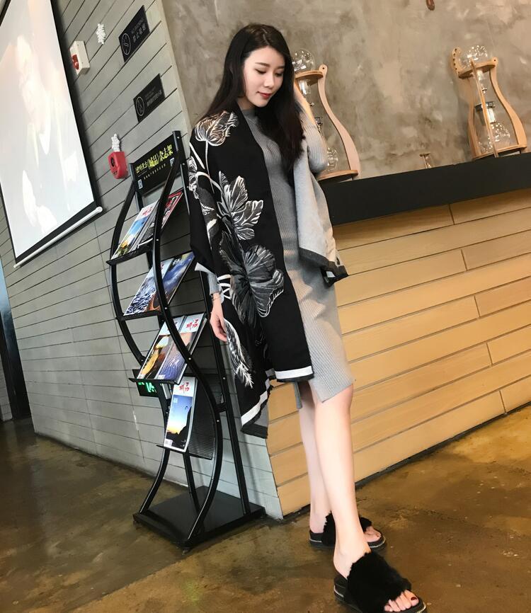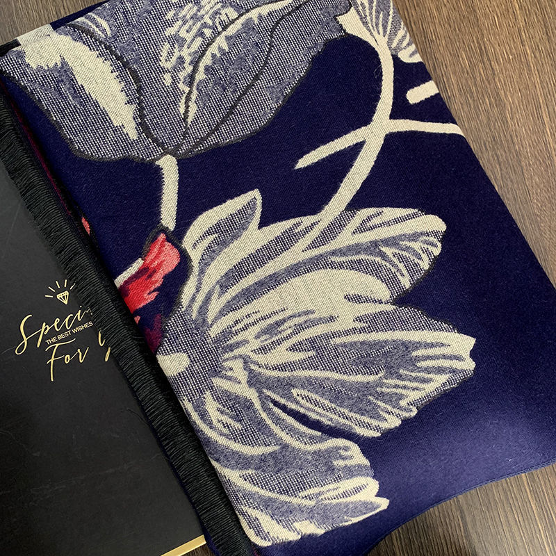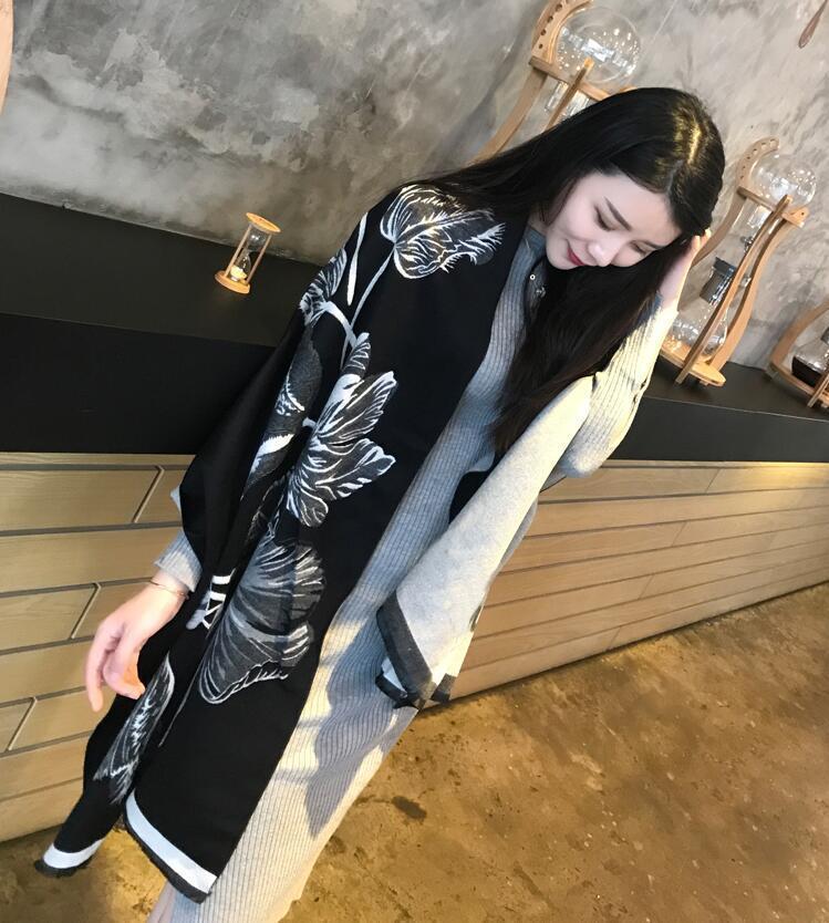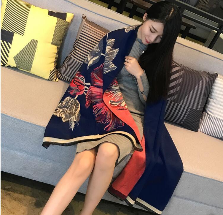 플라워 캐시미어 스카프 여성용 가을과 겨울 한국식 이중 사용 양면 모든 매치 슈퍼 롱 두꺼운 울 숄 따뜻한 스카프