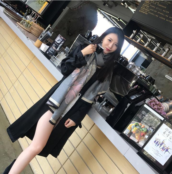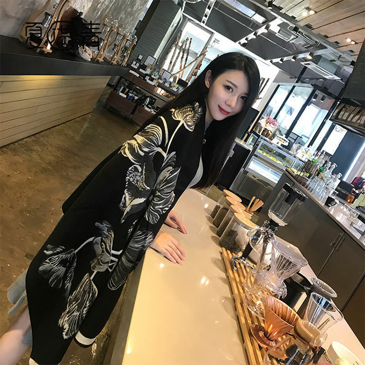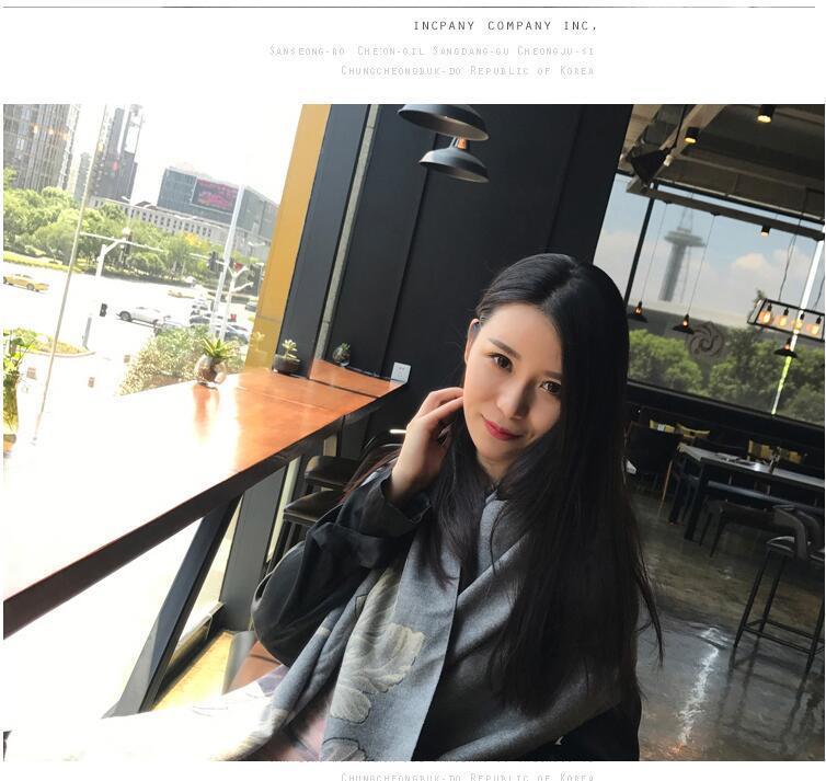 플라워 캐시미어 스카프 여성용 가을과 겨울 한국식 이중 사용 양면 모든 매치 슈퍼 롱 두꺼운 울 숄 따뜻한 스카프스토어 가기