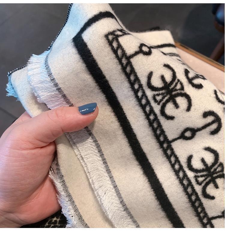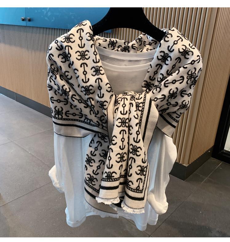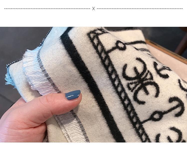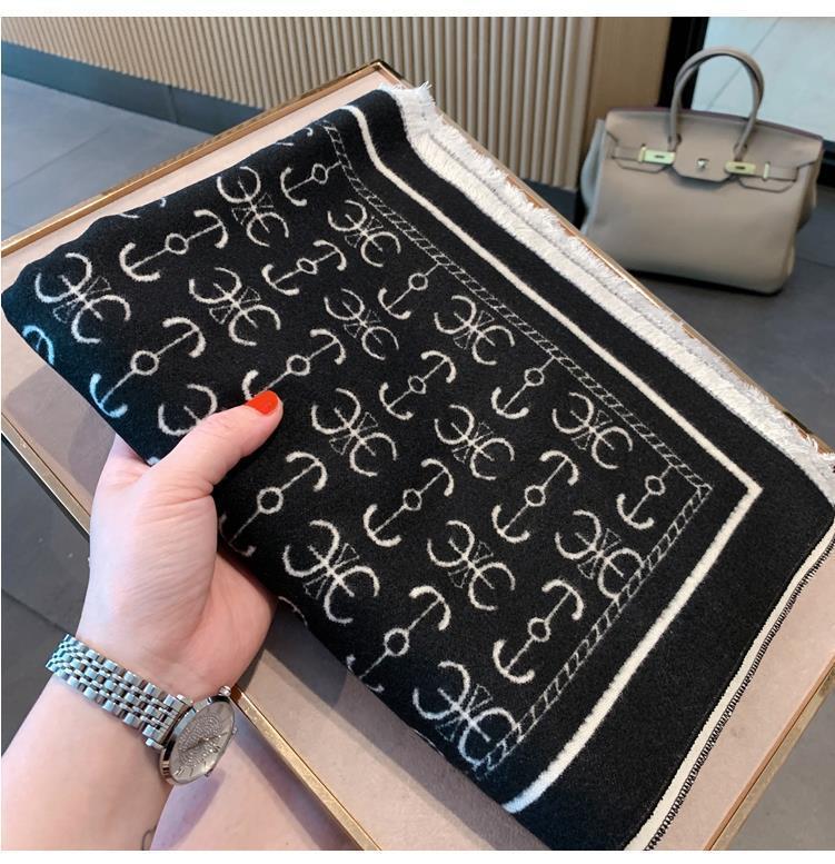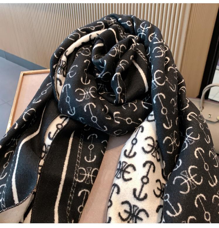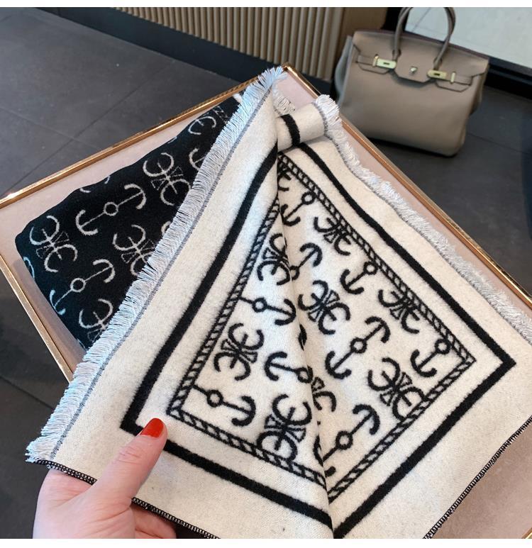 하이 퀄리티 흑백 보트 앵커 양면 캐시미어 스카프 여자의 겨울 한국 스타일 모든 경기 두꺼운 따뜻한 목 대형 숄